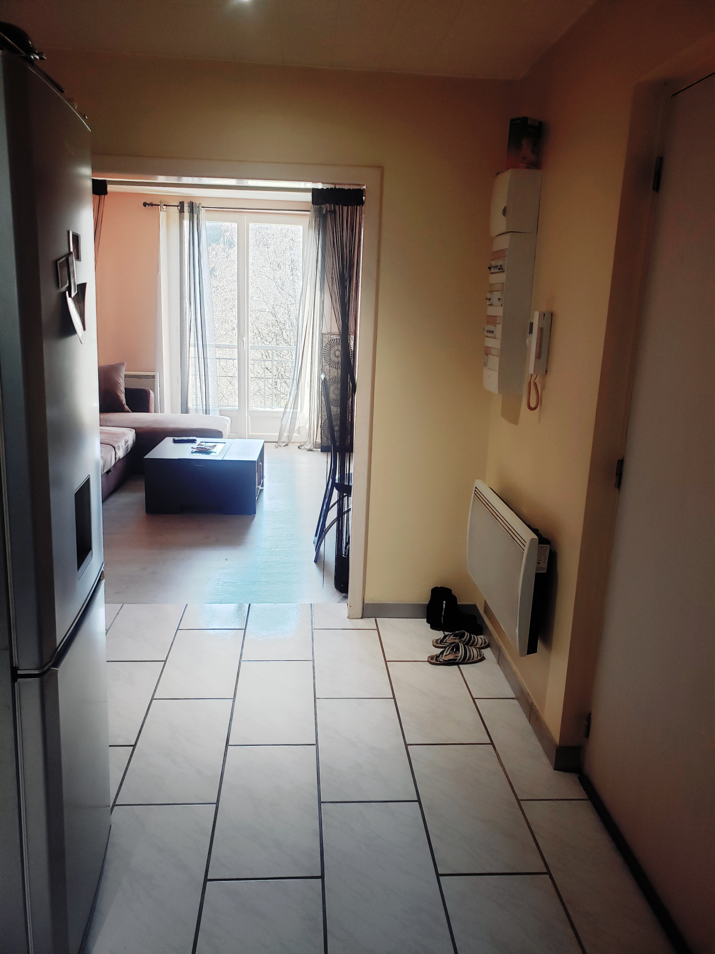 ... en L avec placards intégrés vous mène à deux chambres : une première chambre de 9m2 environ, idéale...