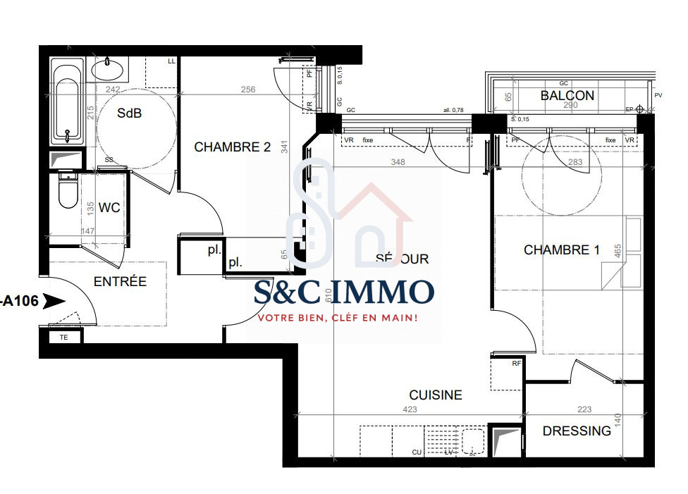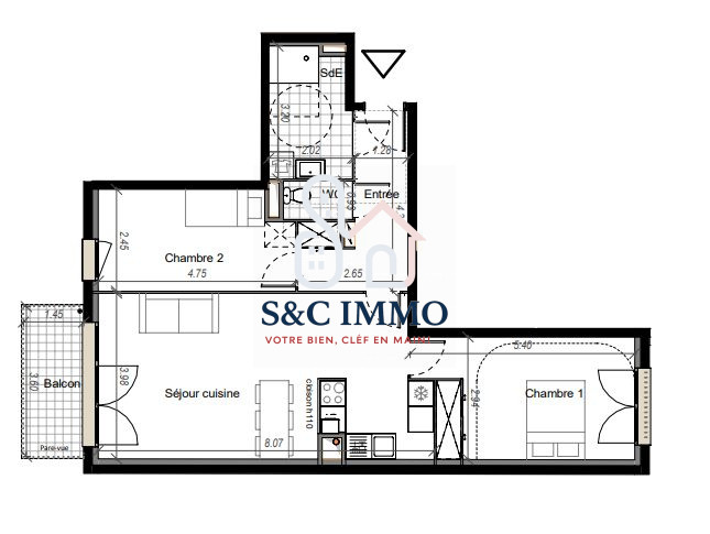 ...Il se compose d'une entrée, d'un séjour lumineux avec cuisine ouverte, d'un balcon, de deux...