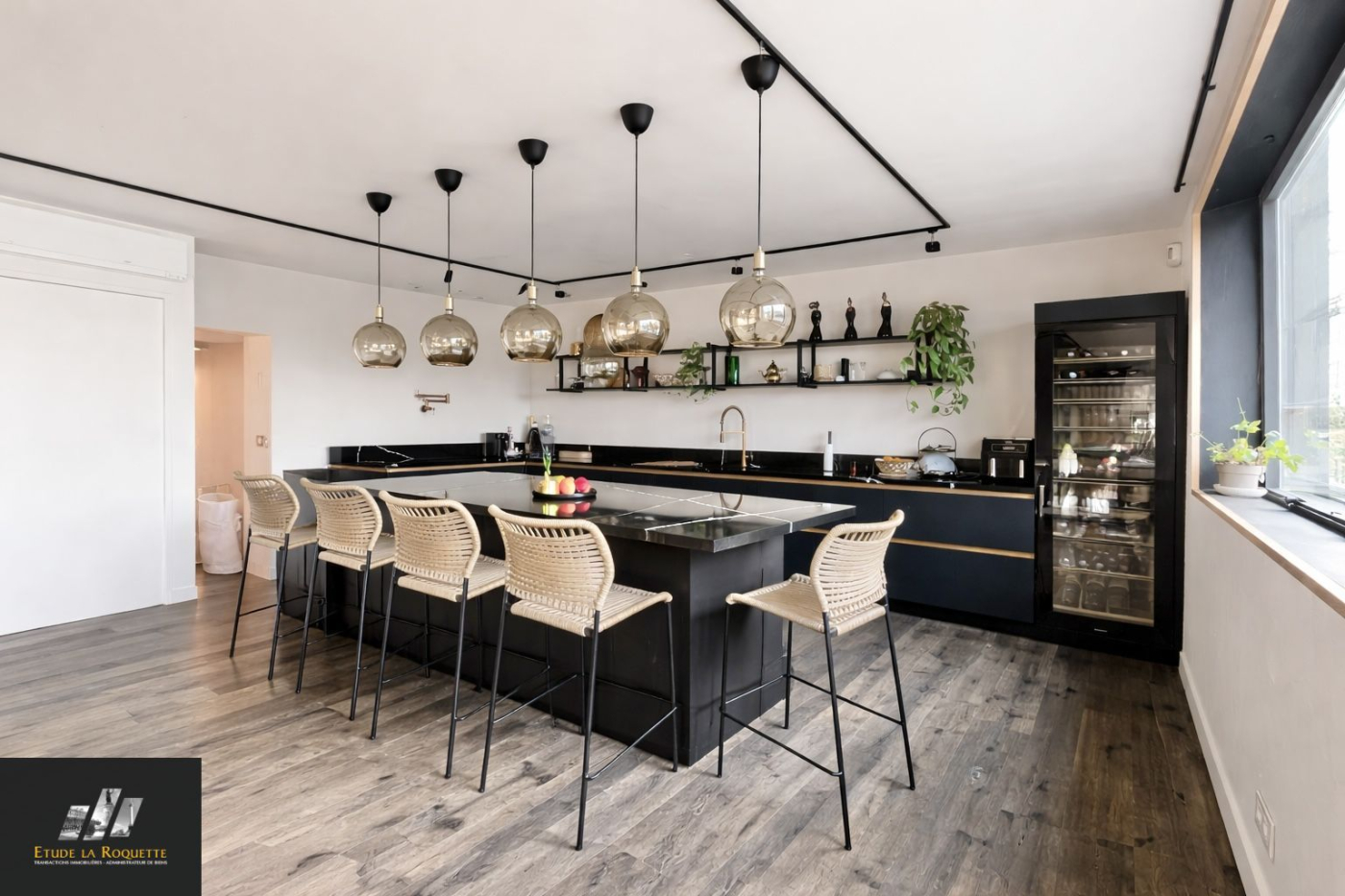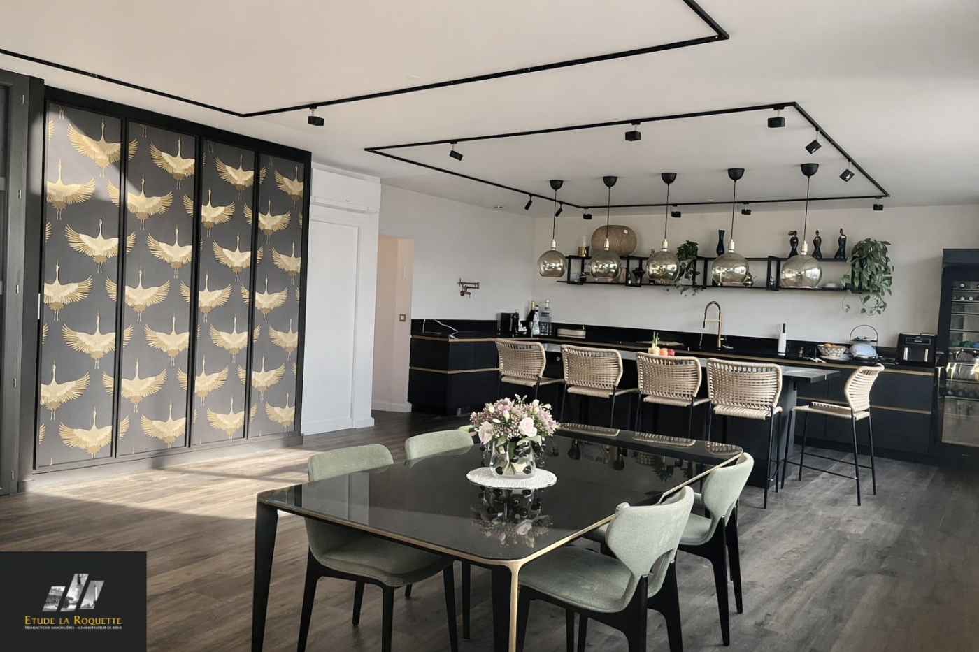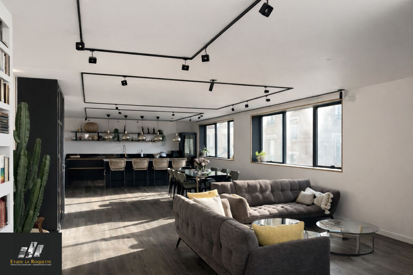 ...Il comprend un grand séjour double, sur cuisine ouverte et entièrement aménagée, une buanderie,...