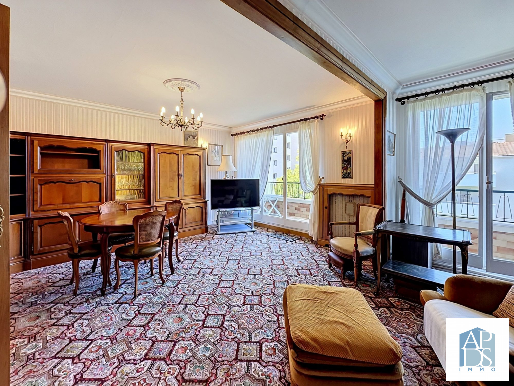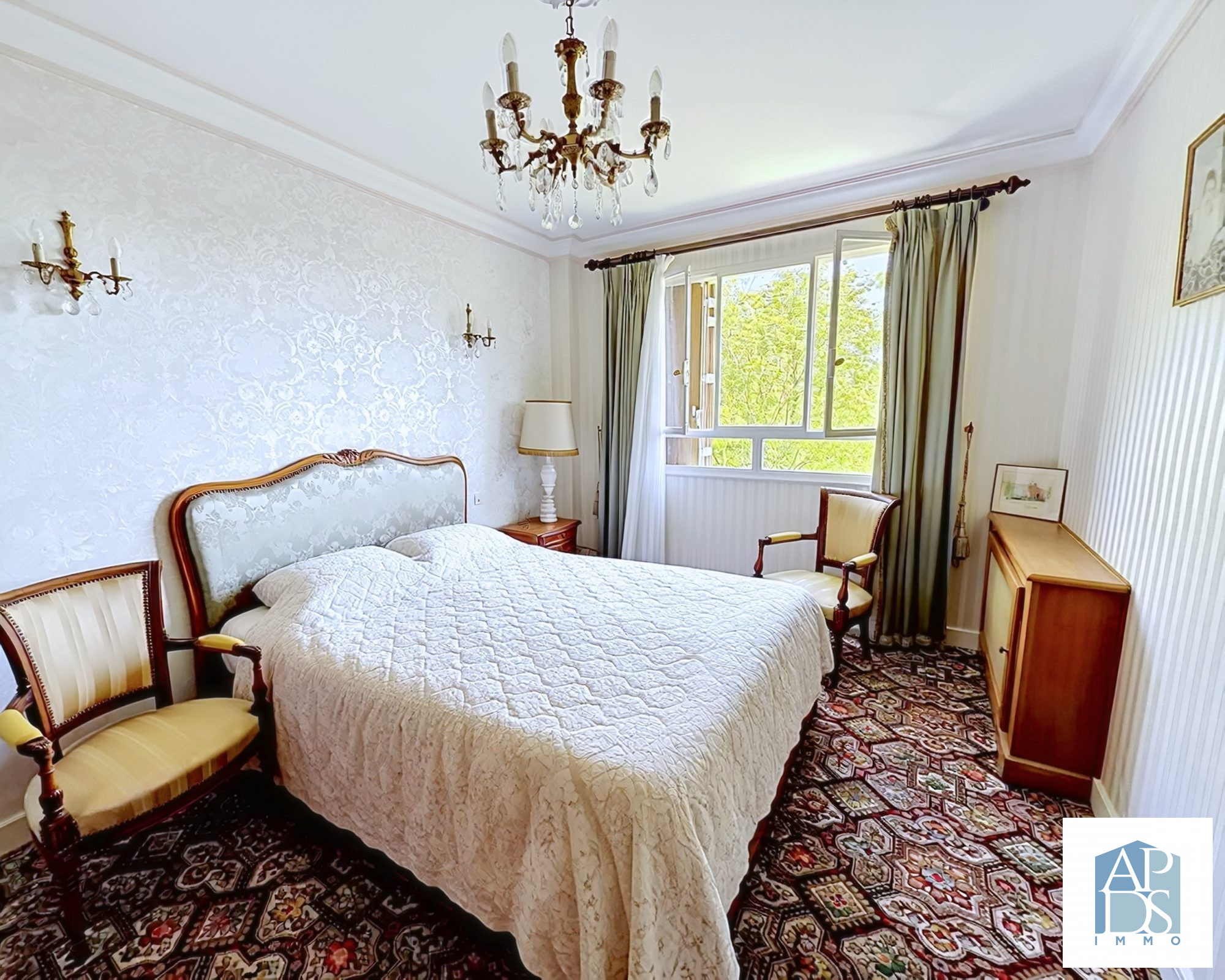 ... sur un grand parc, sans vis-à-vis, tandis que le séjour profite d'une ouverture sur une ruelle piét...