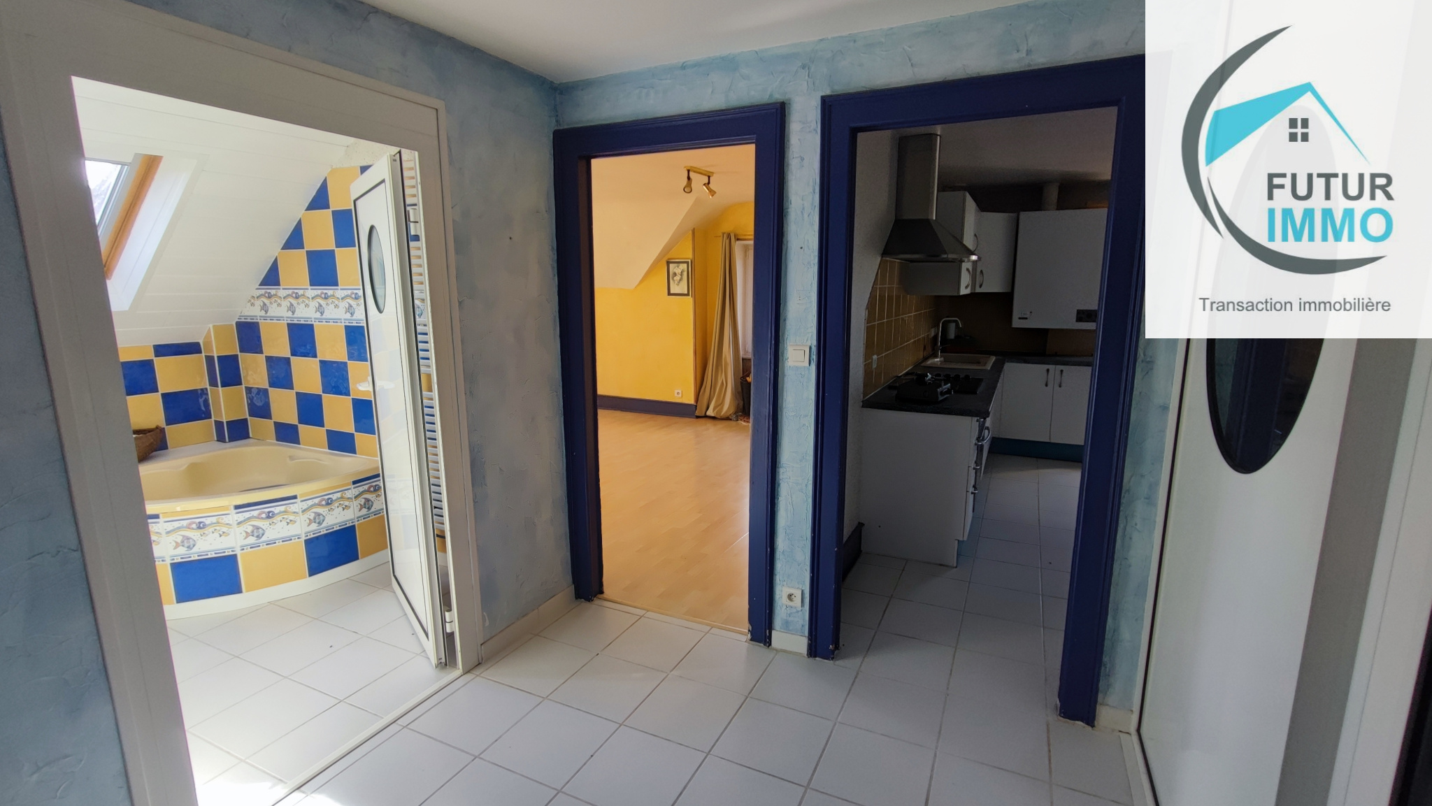 ...au dernier étage sans ascenseur : Entrée en duplex par escalier - Hall desservant Cuisine équipée...