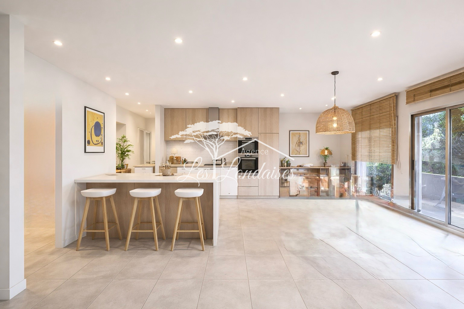 ...Comprenant : Un séjour sur belle terrasse d'angle, avec cuisine ouverte, salle d'eau-w-c...