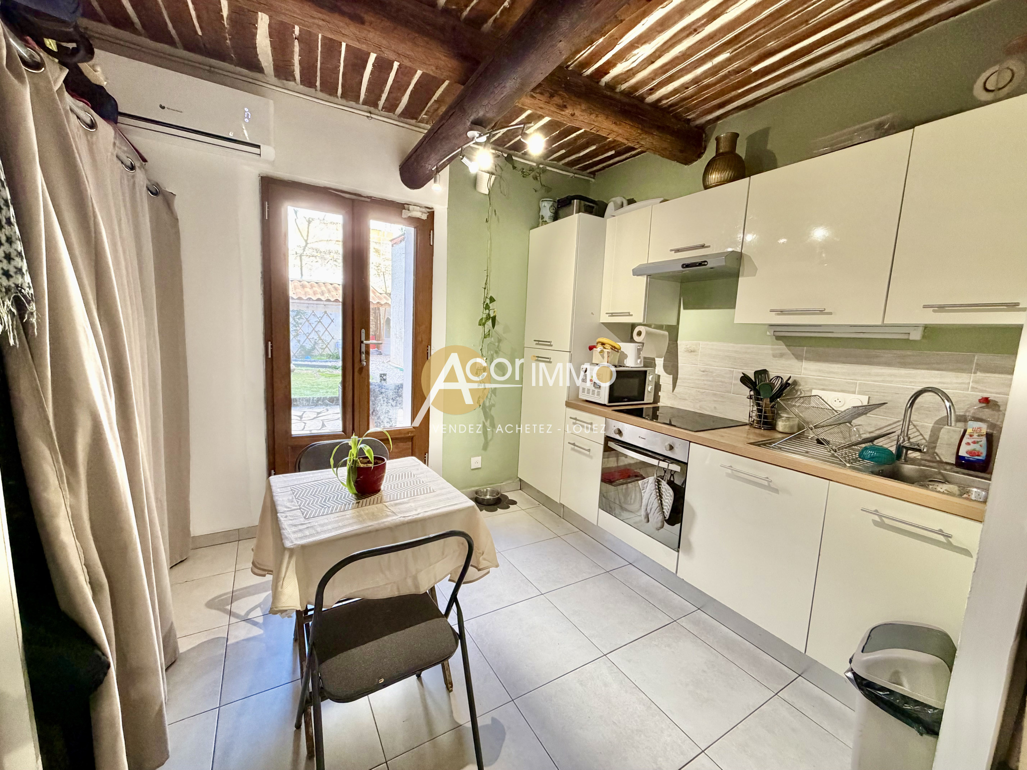 ...Espace de vie spacieux avec cuisine équipée prolongé par un jardin privatif exposition plein sud...