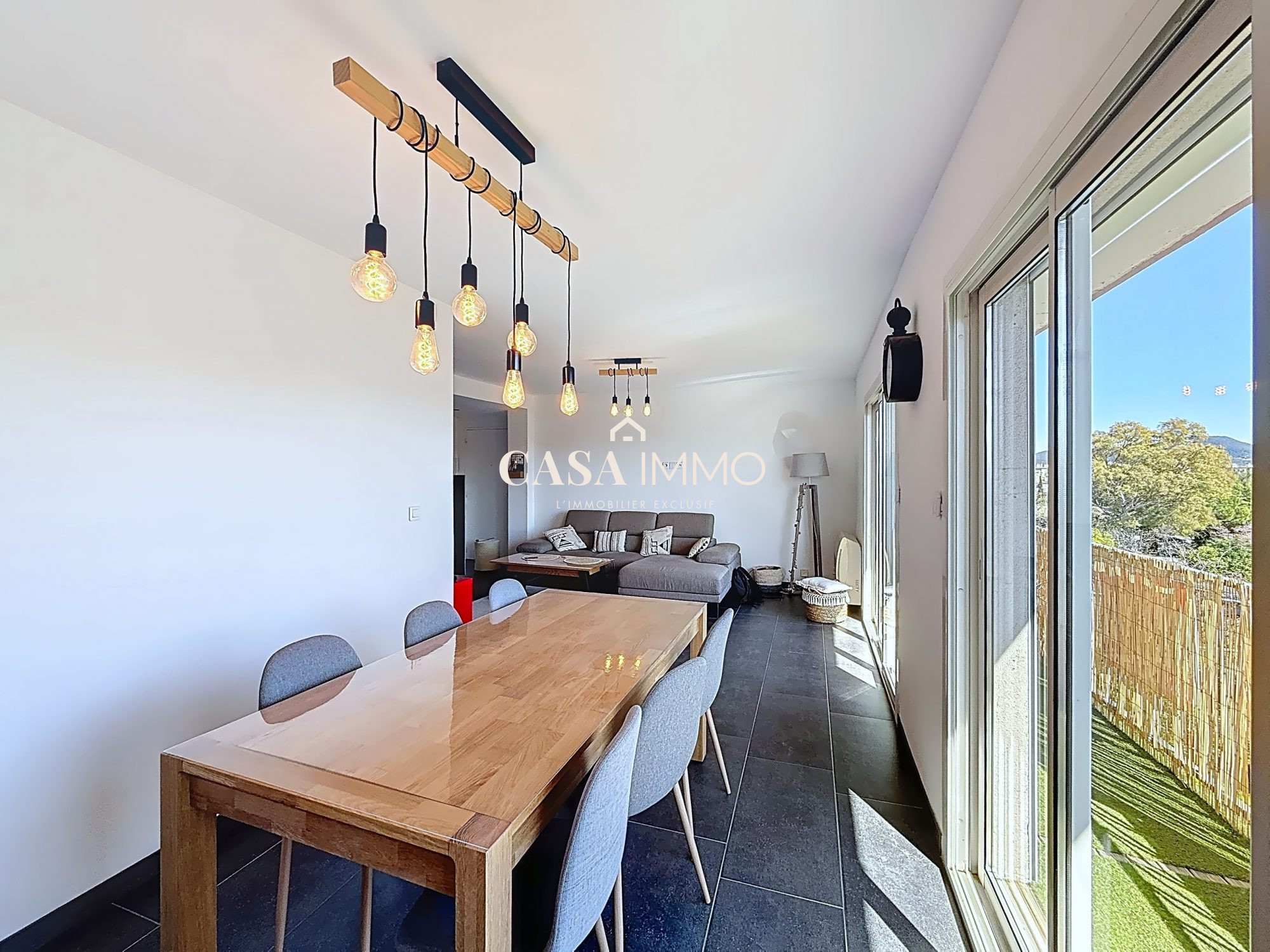 ...La pièce de vie avec cuisine ouverte s'ouvre sur une terrasse de 8 m² avec une vue dégagée sur la...