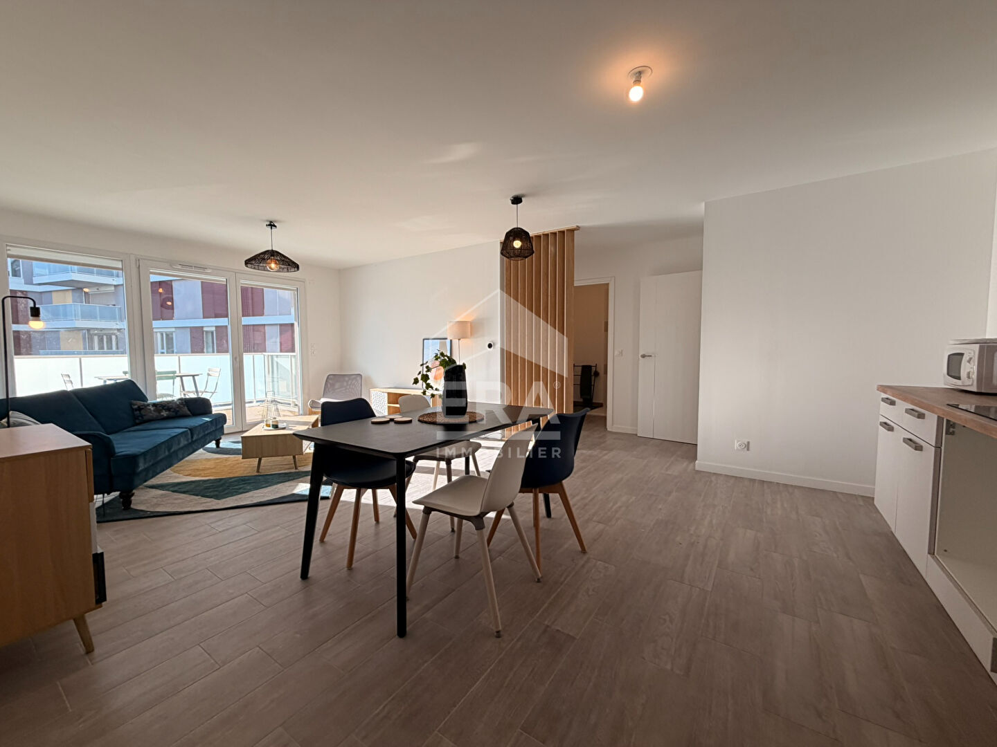 ...Un beau séjour avec cuisine ouverte de 26 m2 donnant sur un agréable balcon de 6m2, une chambre...