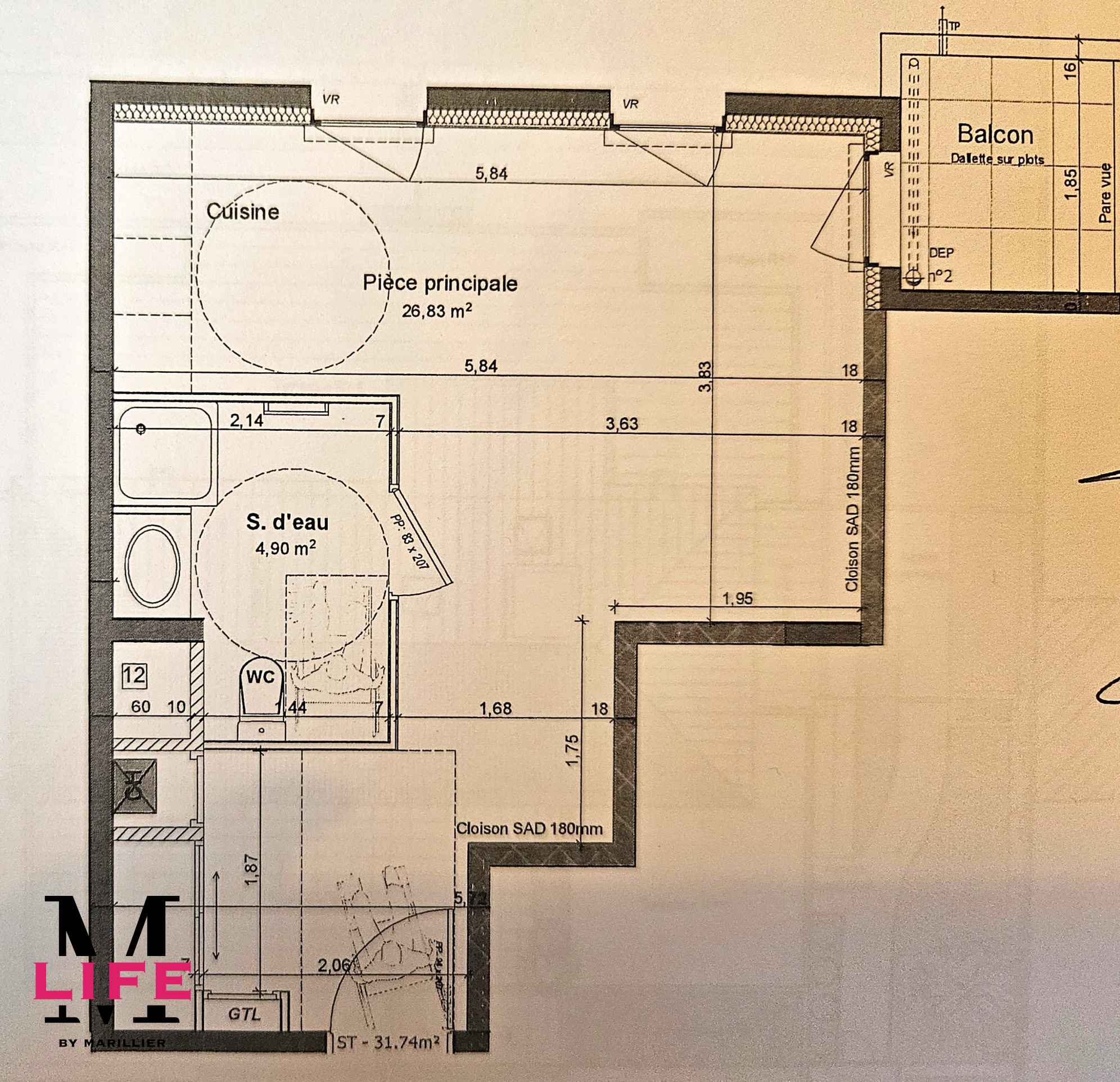 ...RUE PIERRE STOPPASéjour avec cuisine ouverte de 27 m2, très lumineux et donnant sur un balcon de...