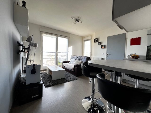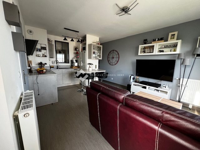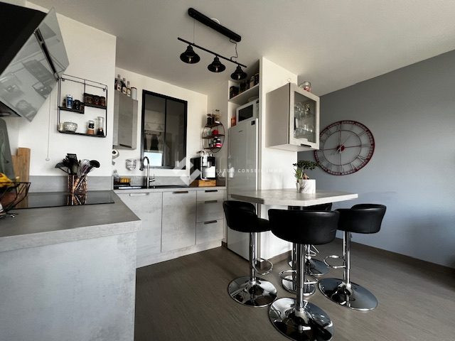 ... une entrée avec placards, cuisine américaine aménagée et équipée ouverte sur le salon/séjour offran...