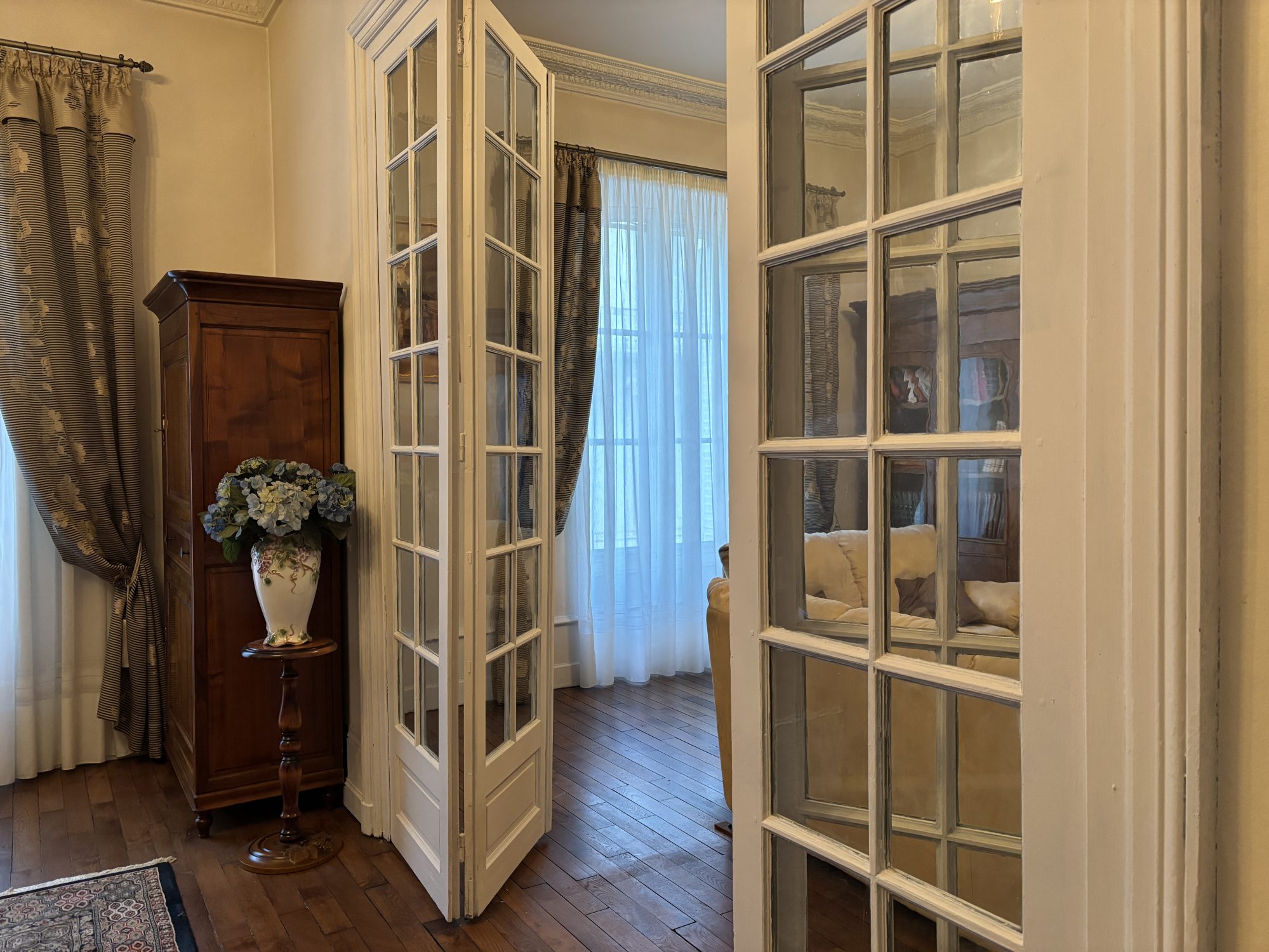 ...Il s'ouvre sur une élégante entrée galerie desservant un salon de réception avec cheminée,...