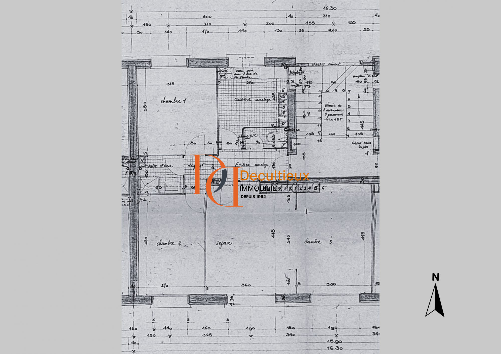 ... 15,8m2, une cuisine équipée, 3 grandes chambres de 11 à 13,3m2, salle d'eau et wc séparés.