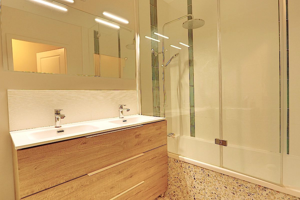 ...L'entrée dessert un WC séparé, puis s'ouvre sur une belle pièce de vie avec cuisine ouverte sur...