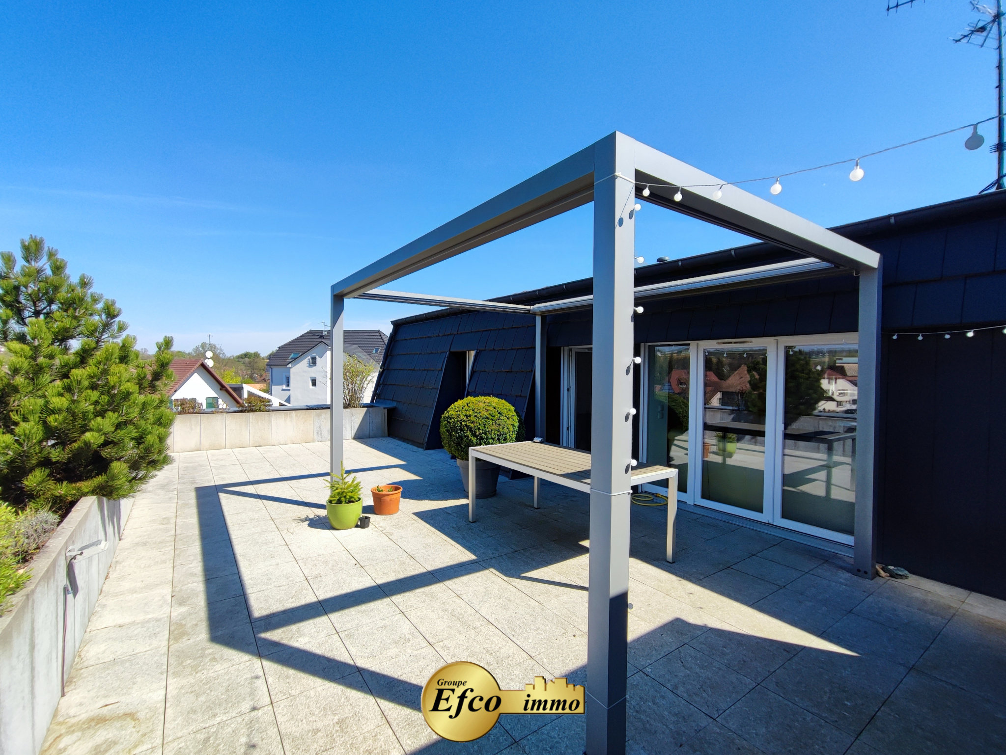 ...Coup de coeur pour cette terrasse d'une superficie de 55,63m2 équipée d'une pergola cube ainsi...