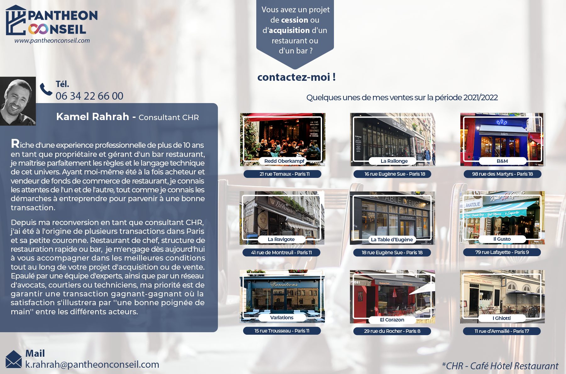 ... 5 - Cession de fonds de commerce de restauration situé dans une des rues les plus touristiques de P...