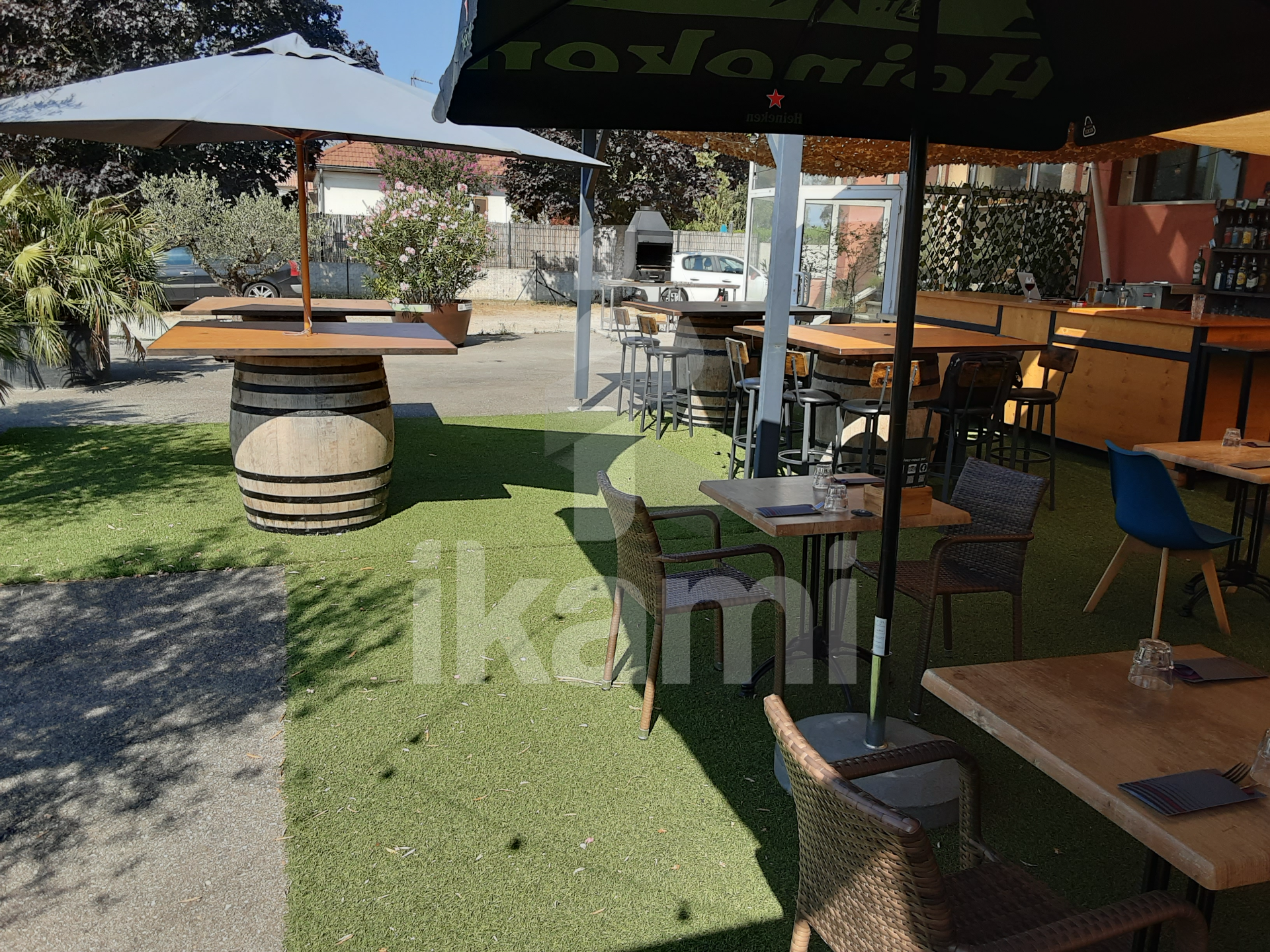 ...A l'entrée, un parking de 50 places sécurisé, une grande terrasse couverte et son bar extérieur...