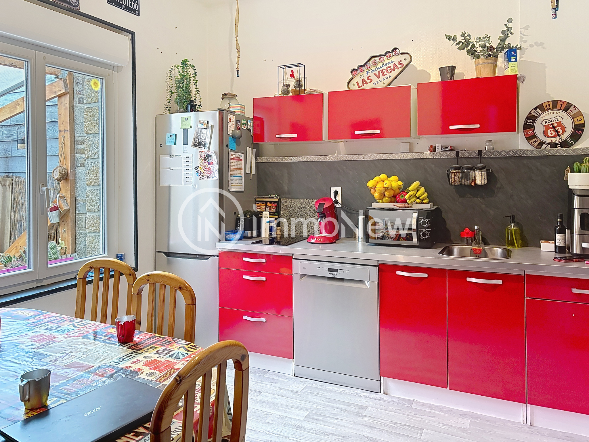 ...Depuis le couloir, un accès donne sur une terrasse extérieure et la cour avec ses deux garages...