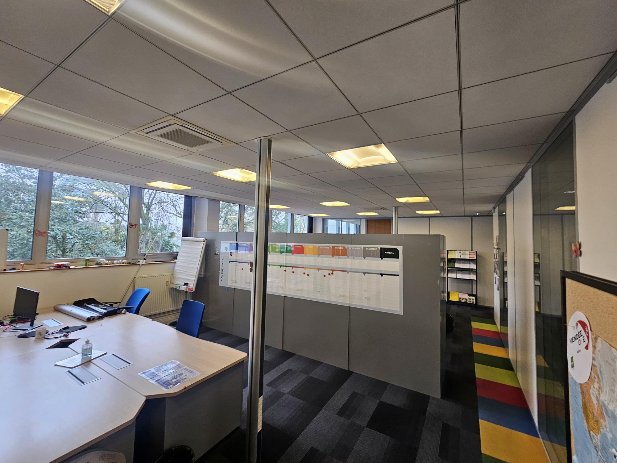 ...Les bureaux sont aménagés, cloisonnés, climatisés et équipés de réseau informatique RJ45...