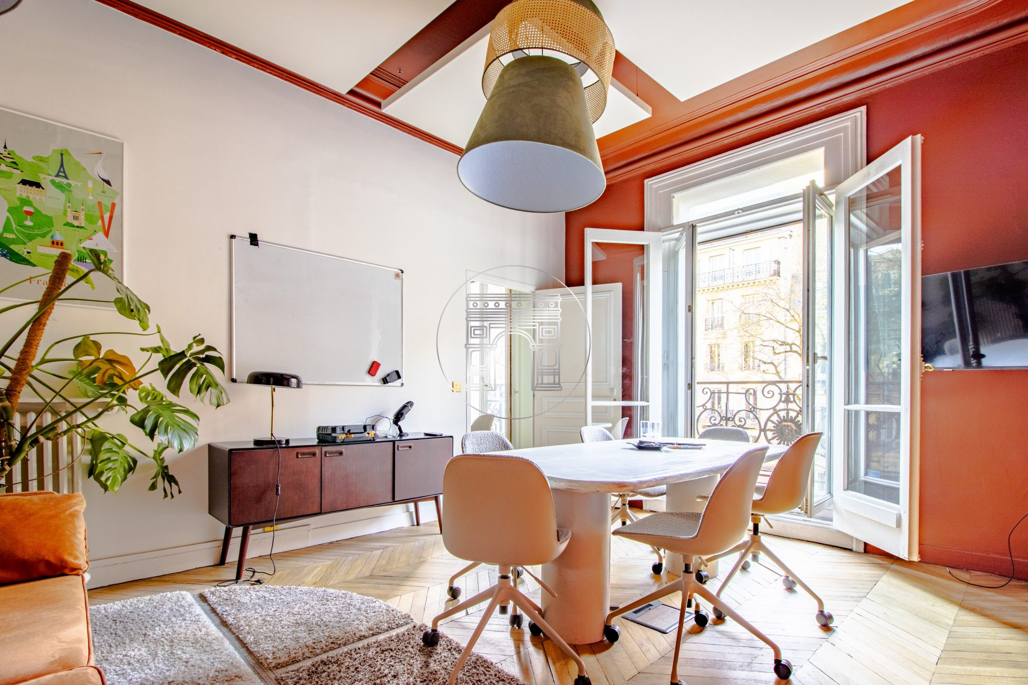 ...Les locaux sont aménagés en trois espaces ouverts, deux salles de réunion, un espace détente, une...