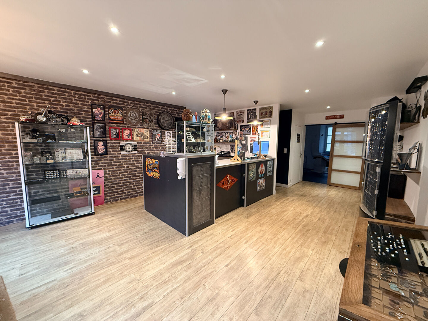 ...- à l'étage : palier desservant deux salles de tatouage et une salle de bains à refaire...