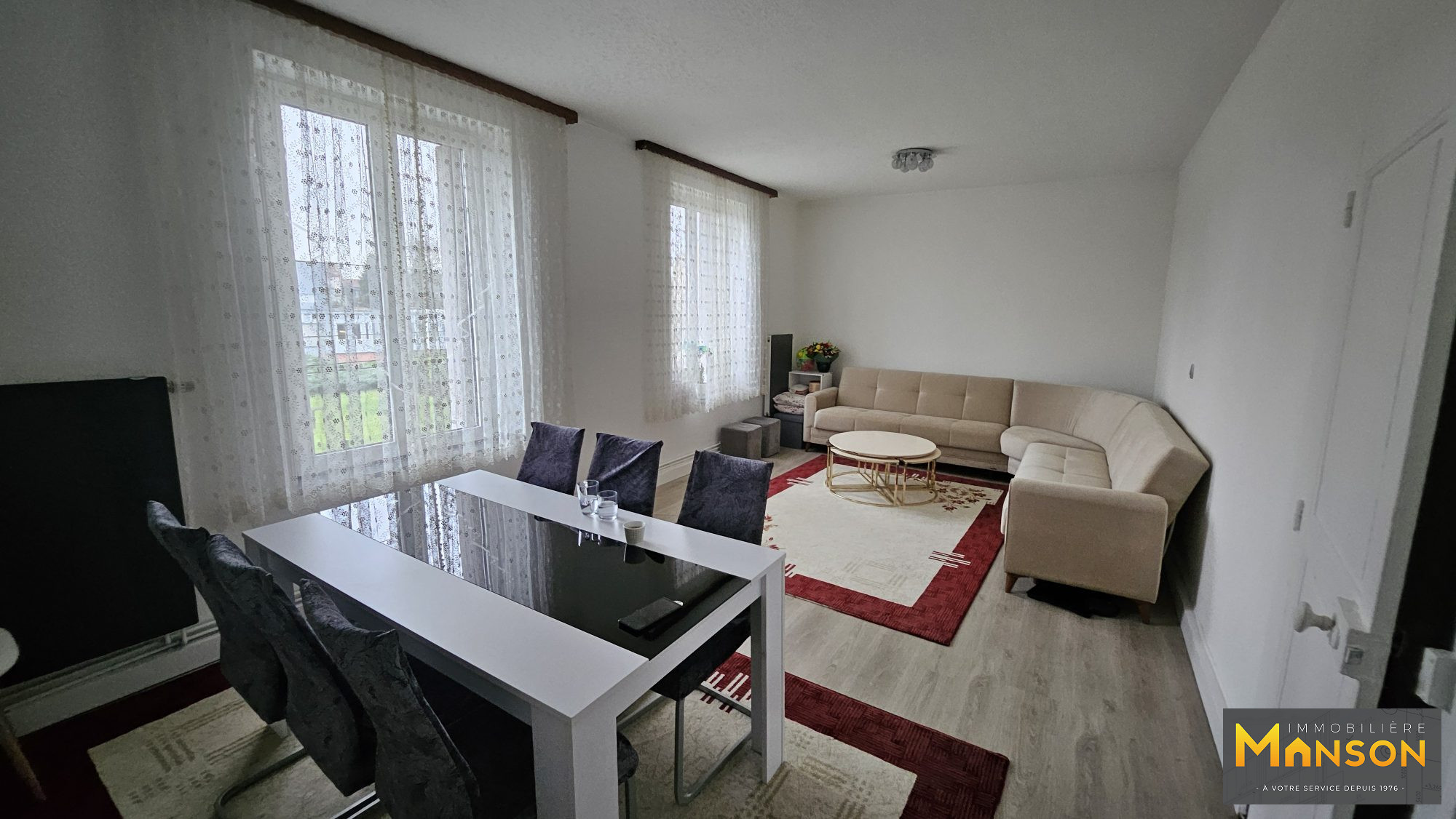 ...Au 1er étage, un F3 de 70m2 composé d'une cuisine, un wc, un salon-séjour, 2 chambres et une sdb...