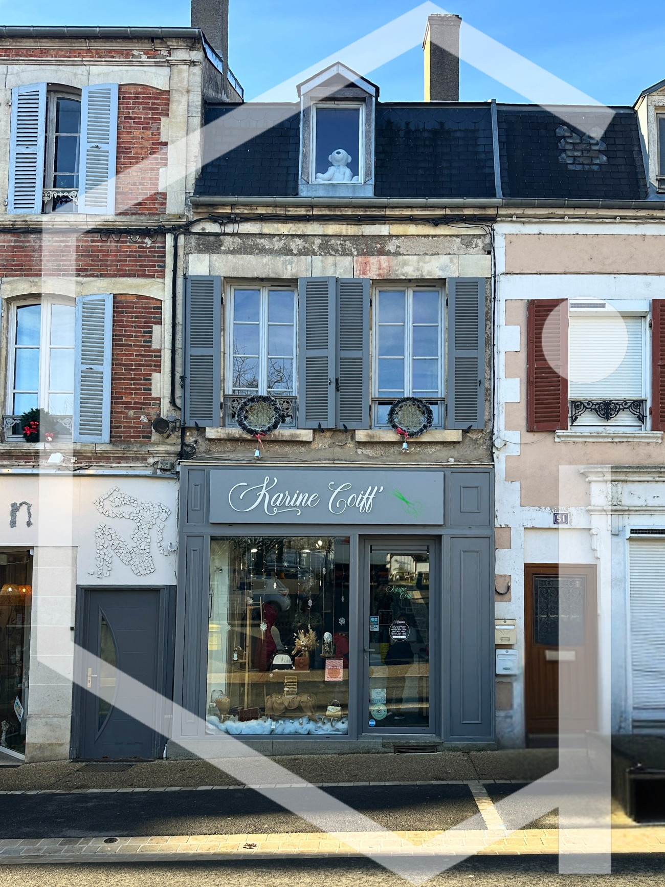 ...Il se compose, au rez-de-chaussée, d'un salon de coiffure bénéficiant d'une vitrine récente,...