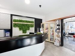 ...Les espaces se composent comme suit : - Un bureau d'accueil avec rangements intégrés et vitrine-...