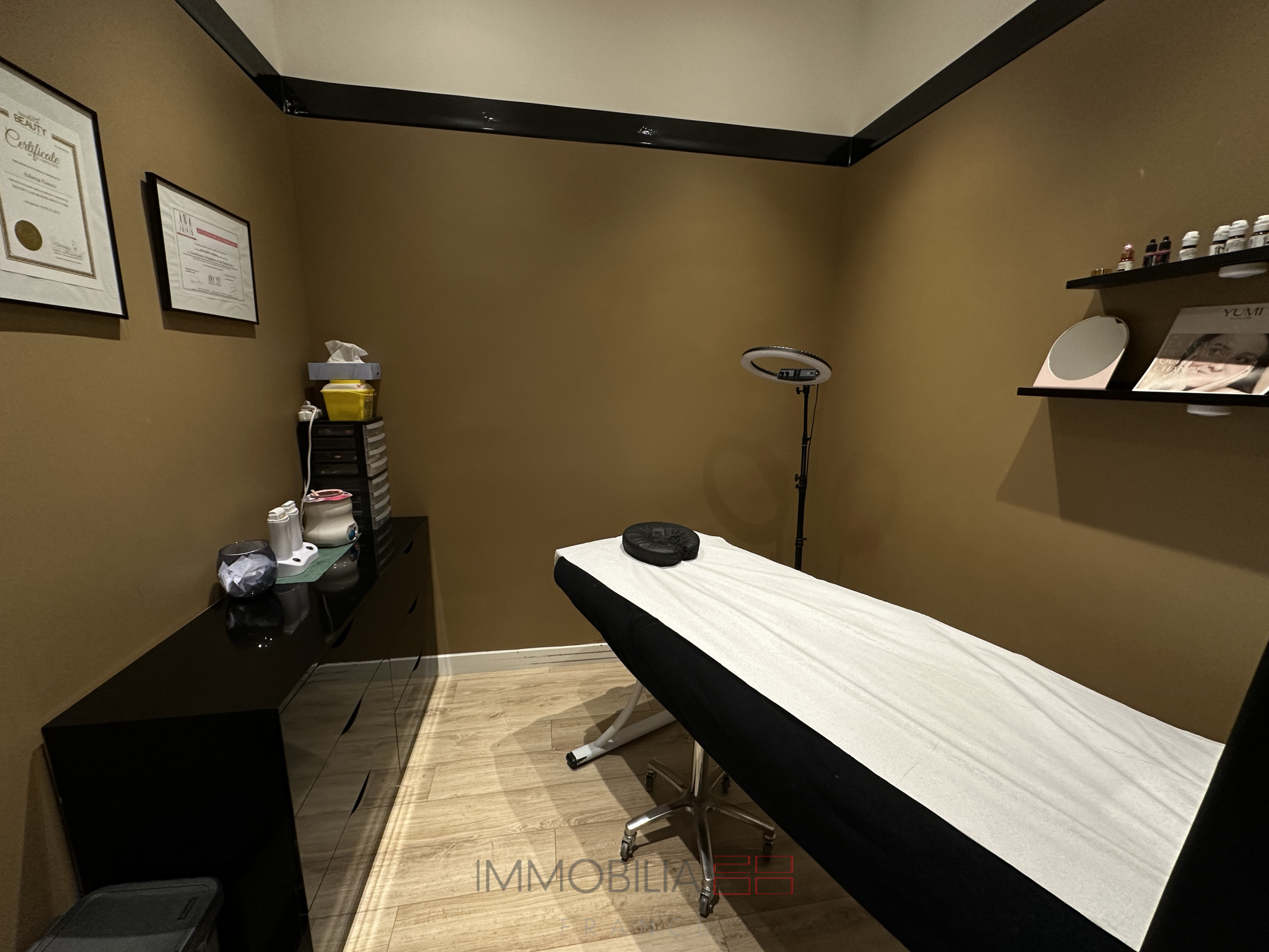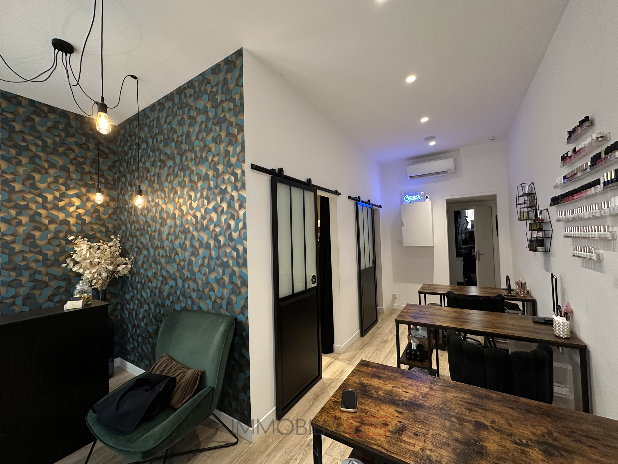 ...Le local est actuellement aménagé en salon de beauté avec 2 cabines fermées, le tout en parfait...