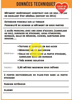 ...  Le bâtiment se compose d'une entrée/accueil  de 3 bureaux (14 m², 17 m² et 21 m²), d'une salle...