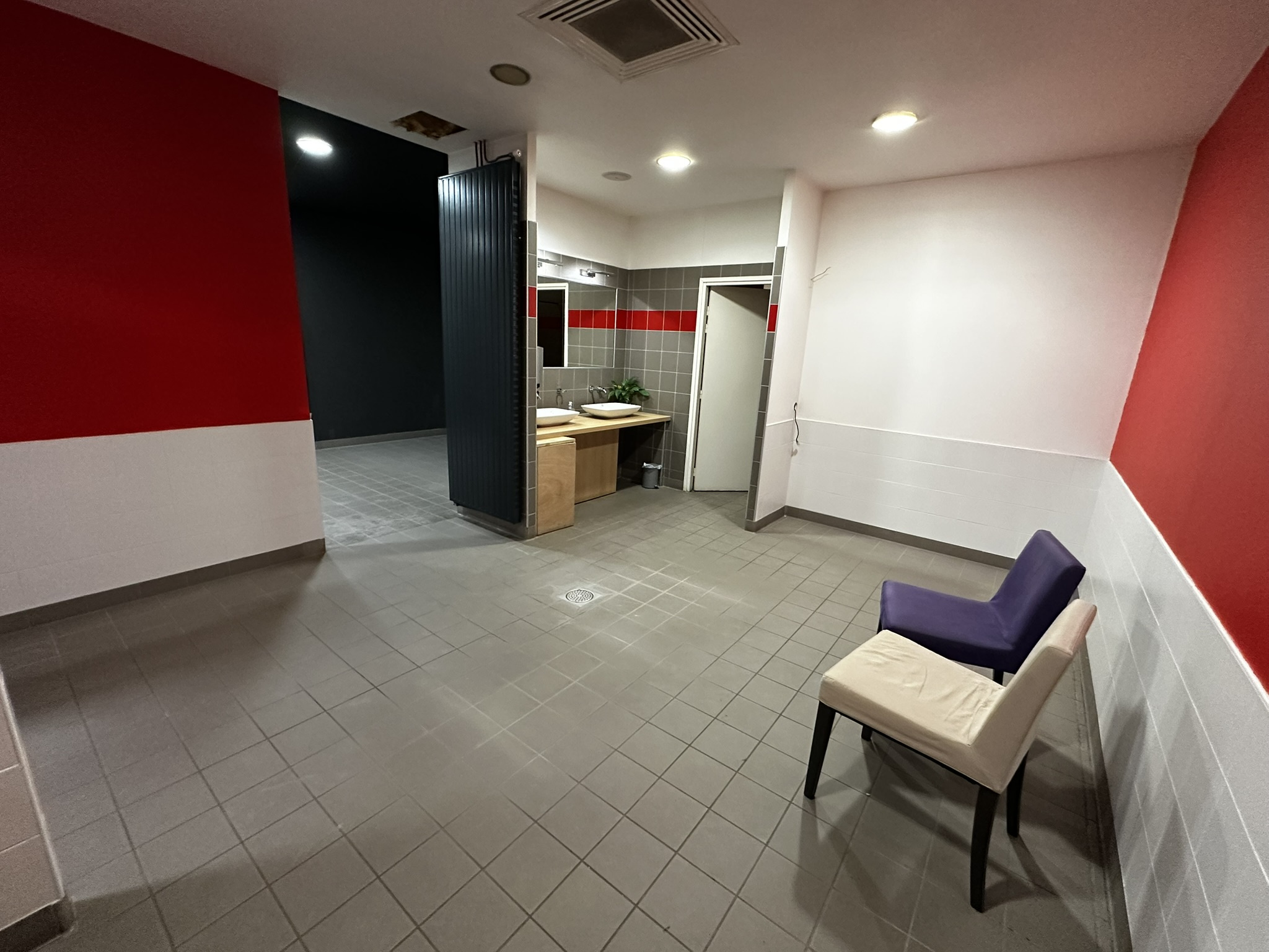 ... inclus : étagères modernes avec éclairage LED, îlot central de présentation, et rideaux électriques...
