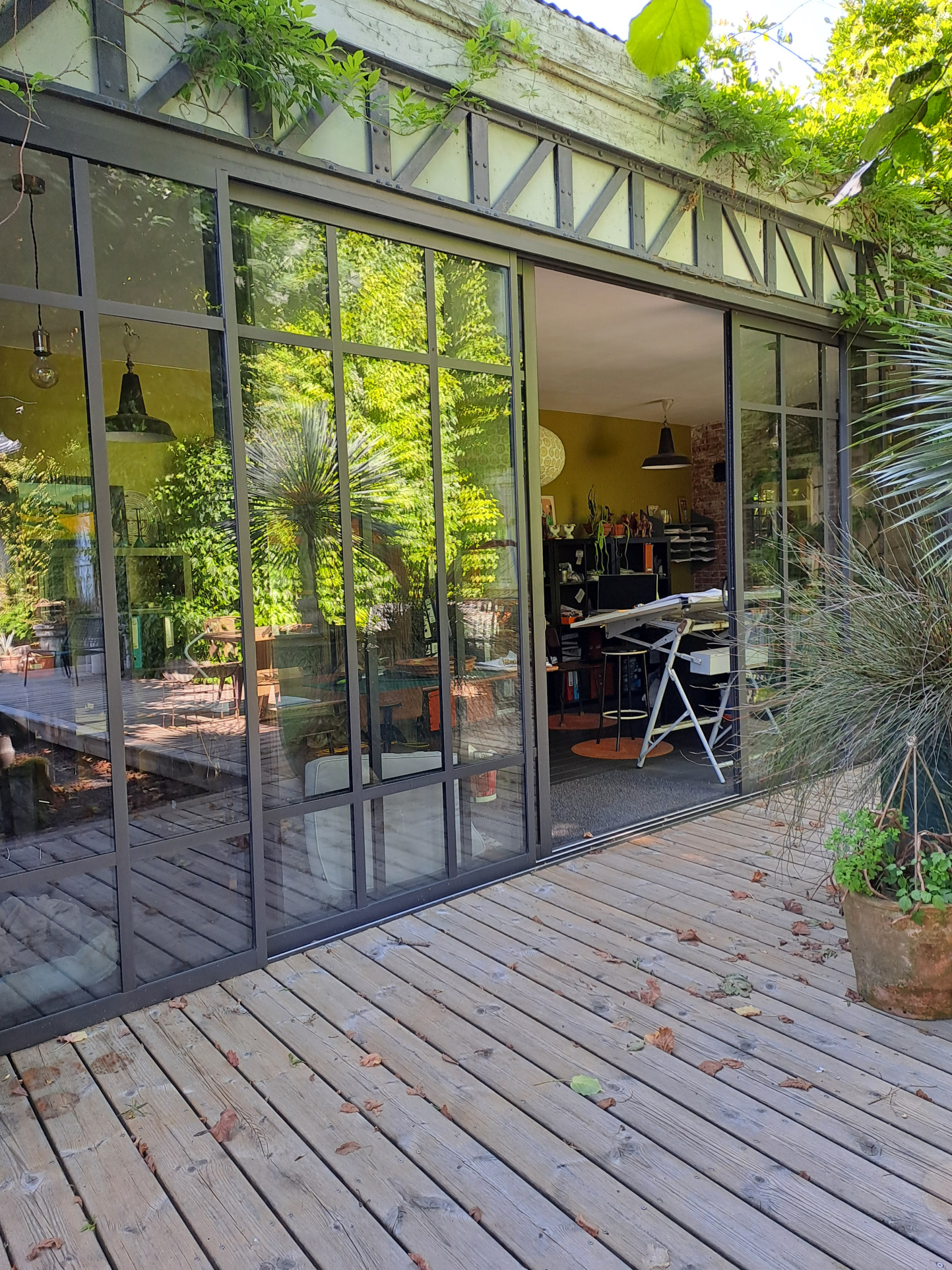 ...La partie professionnelle se compose d'un grand garage d'environ 160 m² situé en façade, offrant...
