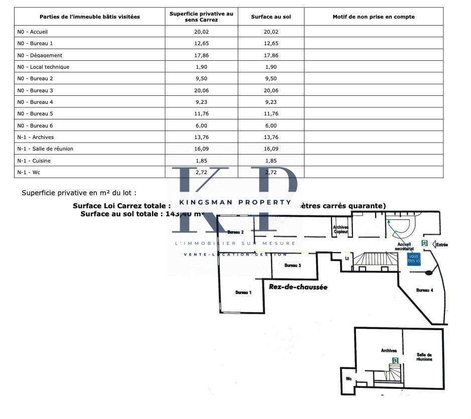 Au sous-sol (30 m²) : Salle de réunion, réserve, WC.<...