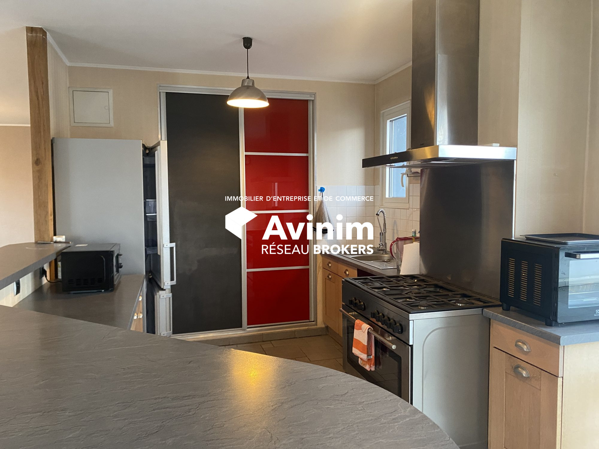 ...Le bâtiment, de 2012, est découpé en 2 zones qui communiquent :- une zone de bureaux de 170 m²...
