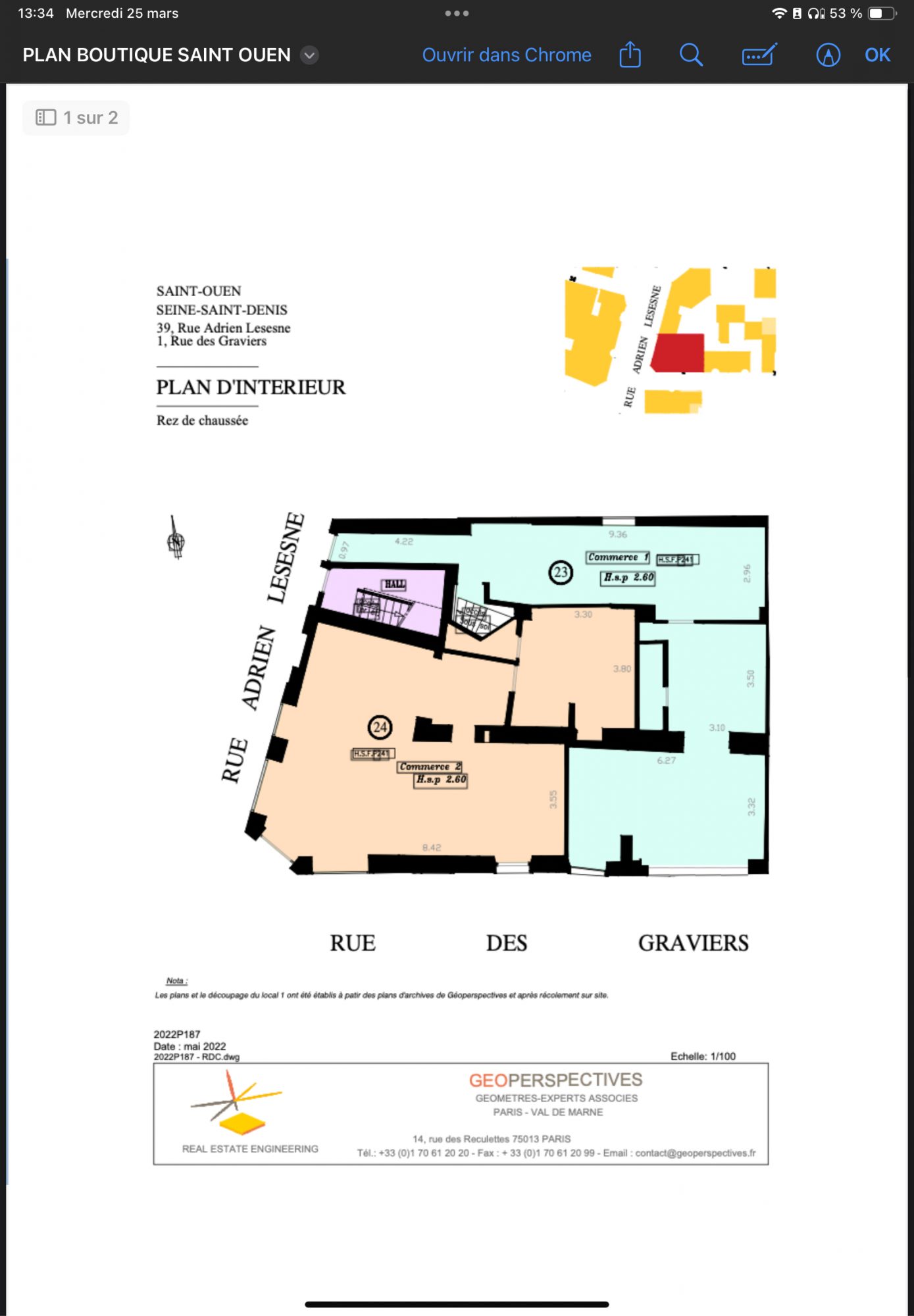 ...Surface totale : 36 m²• 26 m² de surface de vente + 10 m² de réserve + un petit dégagement•...