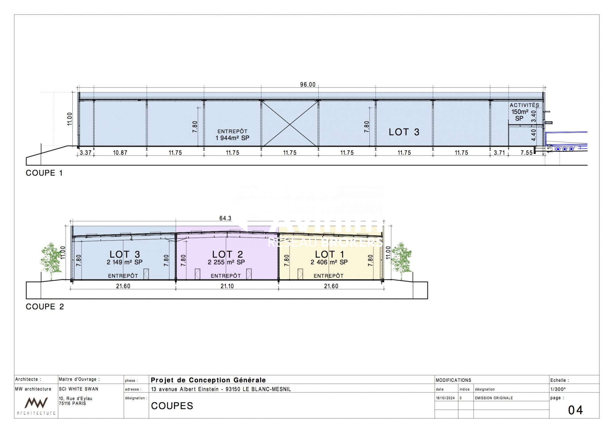... vente un entrepôt neuf, d'une surface totale de 2149 m², , situé au Blanc-Mesnil (93) .Le bâtiment ...