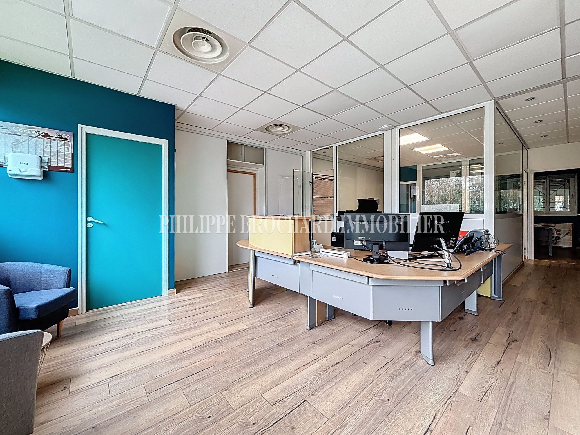 ...La partie bureaux d'une superficie d'environ 165 m² comprend un espace de réception clientèle, 2...