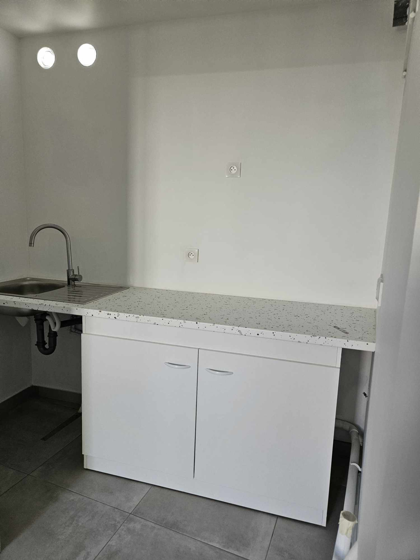 ...Elle se compose au rez de chaussée d'une pièce de vie ouverte sur un espace cuisine et des WC...
