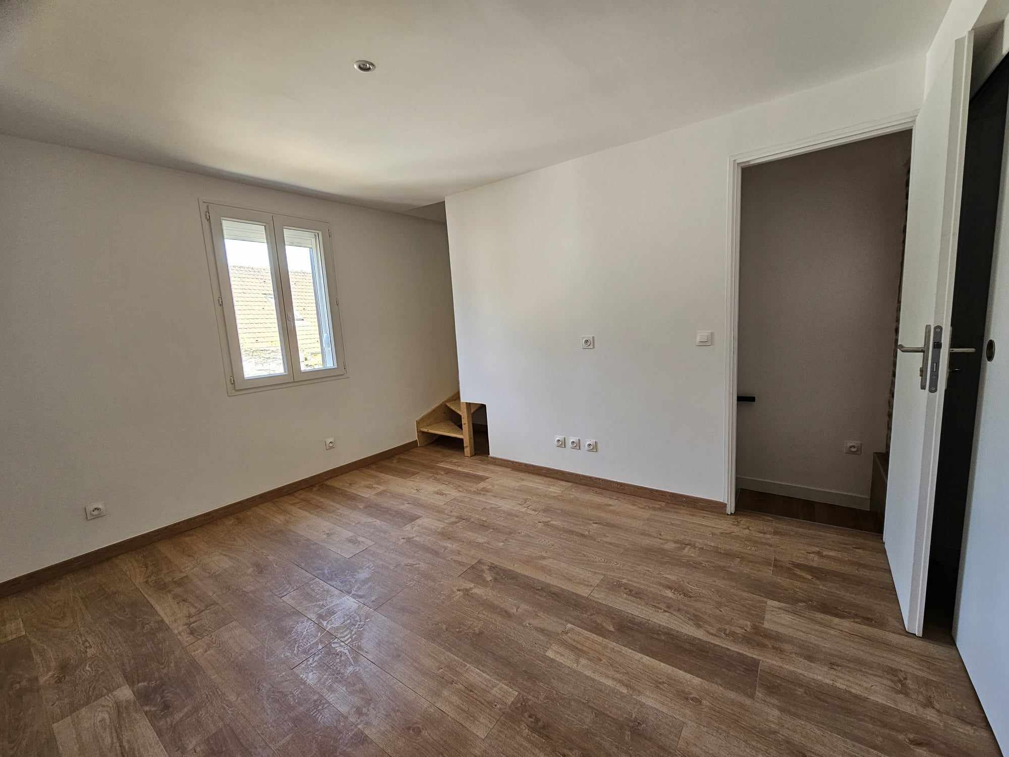 ...cette maison offre au rez de chaussée un séjour de 12m2 ouvert sur une cuisine de 6m2, un couloir...
