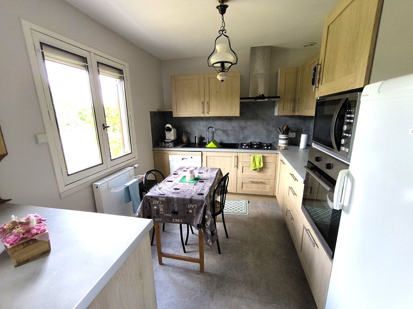 ...Au rez-de-chaussée : entrée sur une belle pièce de vie avec cheminée & insert, cuisine...