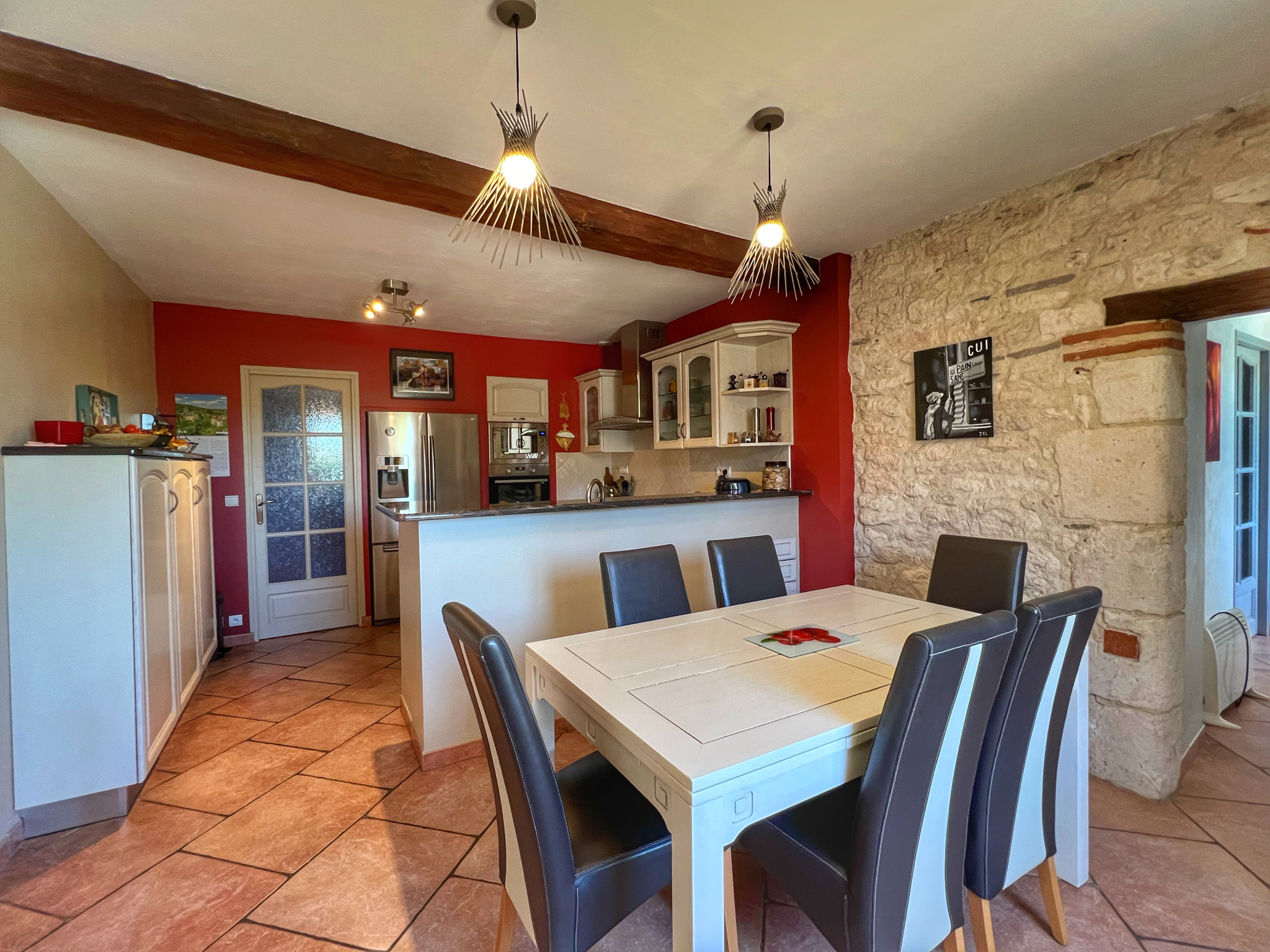 ...Au rez de chaussée vous arrivez dans une pièce de vie pleine d'authenticité avec poutres,...