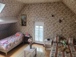 ...Vous disposez au rez de chaussée d'un vaste salon séjour lumineux de 30m² avec poêle à bois...