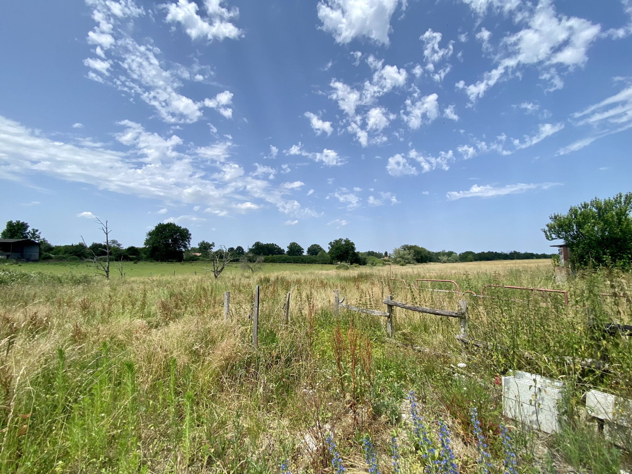 ... terrain plat avec hangar env 250m2 et dépendances.