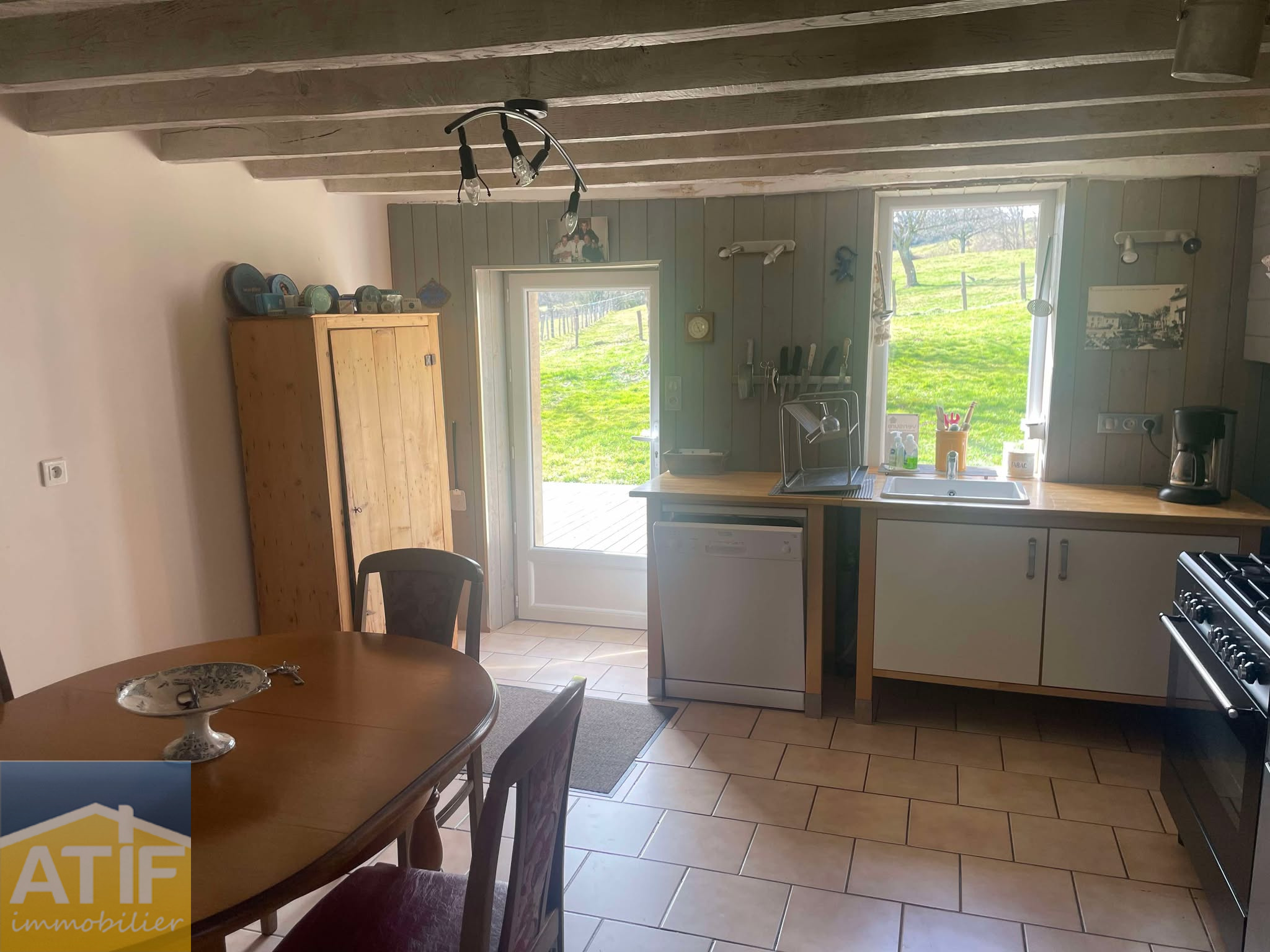 ...Elle offre au rez-de-chaussée, une cuisine, un salon aisni qu'une salle d'eau avec wc...