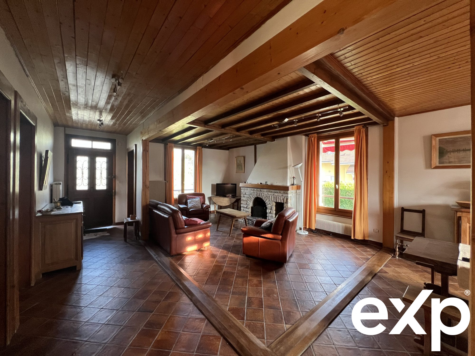 ...Elle offre un beau séjour chaleureux avec cheminée, baigné de lumière, donnant accès à un balcon...