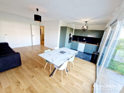 ... cuisine équipée moderne avec salle à manger de plus de 40 m2, une salle d'eau avec WC, un salon de ...