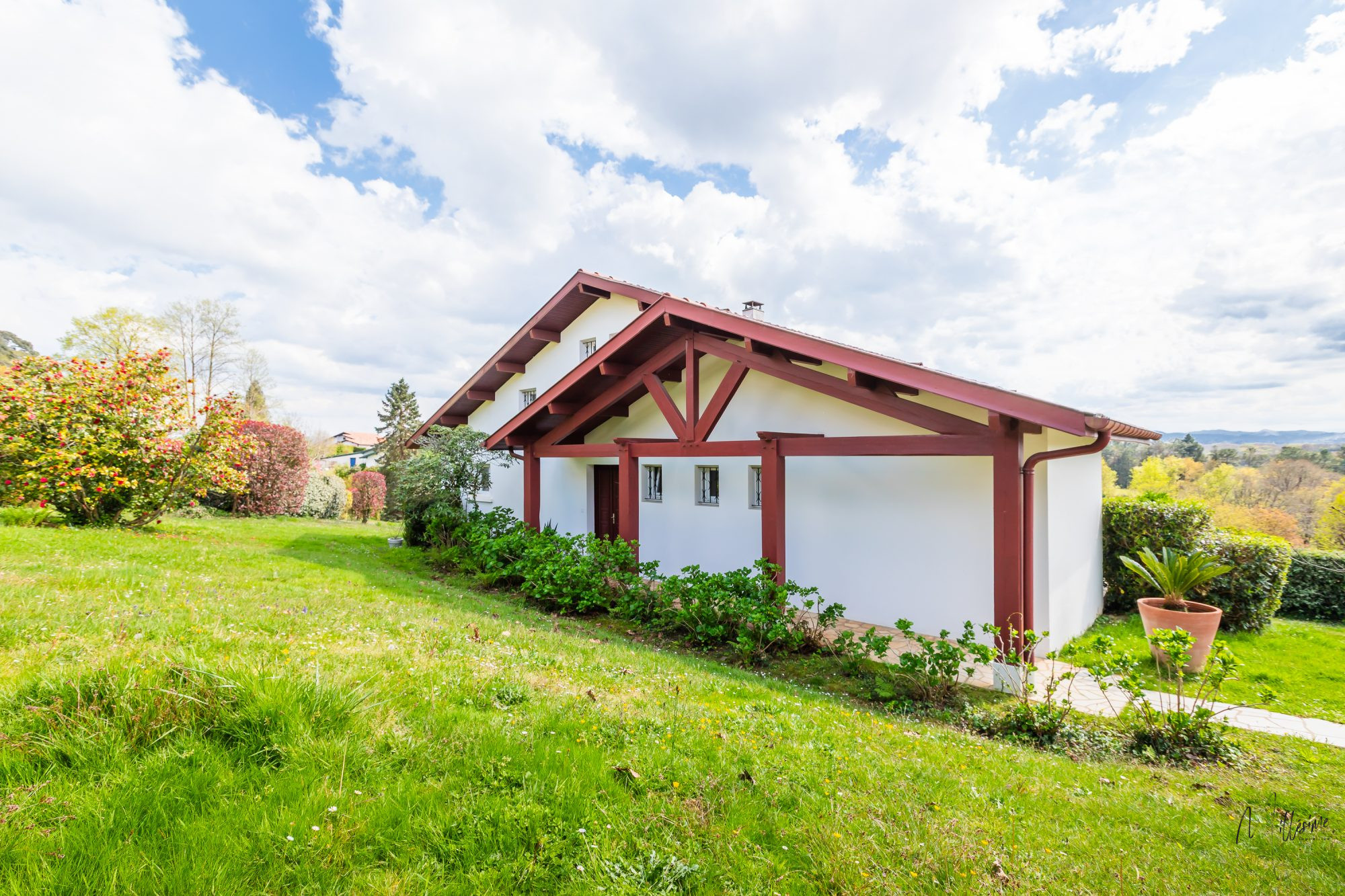 ...Avec son plafond cathédrale et largement ouvert sur la terrasse, le séjour avec sa cheminée offre...