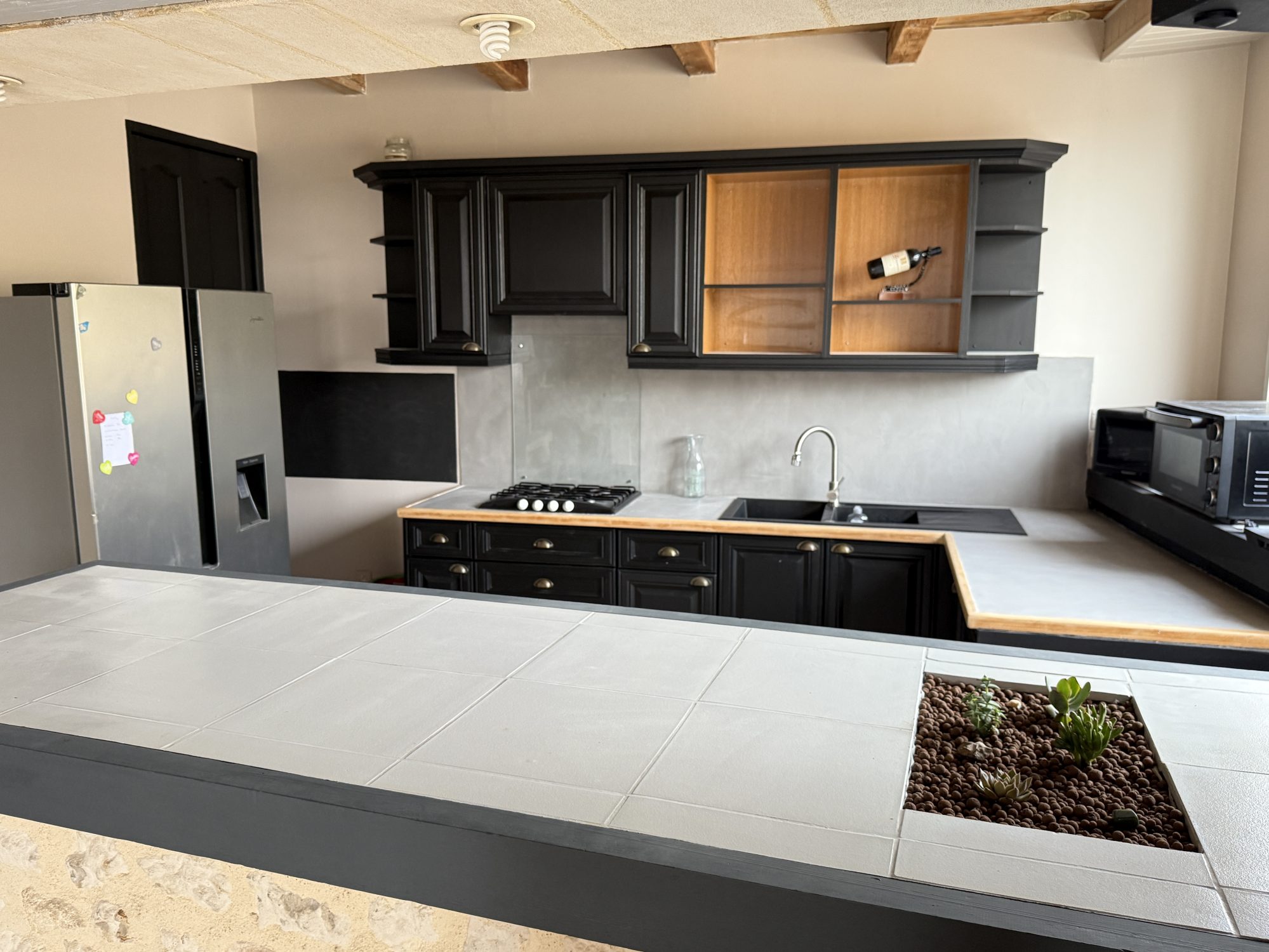 ...Elle propose une grande pièce de vie ouverte de 160 m2 divisée en quatre espaces : la cuisine...