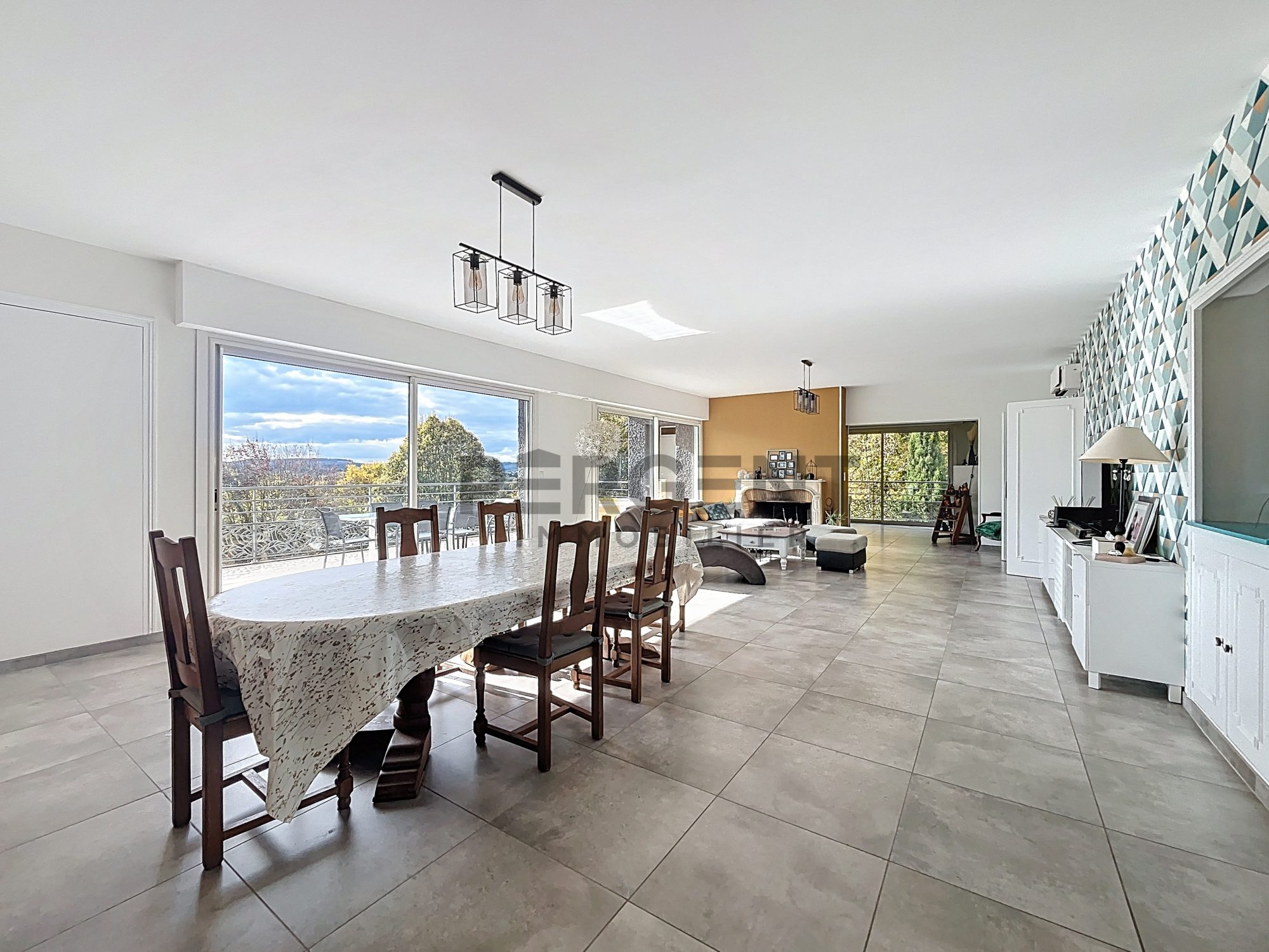 ... un salon-séjour lumineux et traversant offrant un accès direct sur la terrasse avec une vue dégagée...