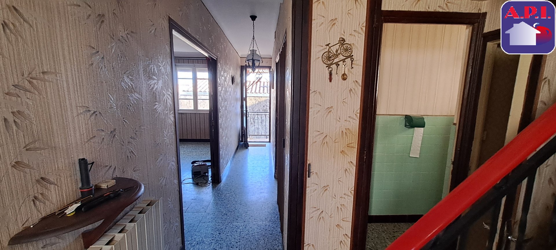 ...L'entrée s'ouvre sur un couloir desservant l'ensemble du rez-de-chaussée, où l'on retrouve un...