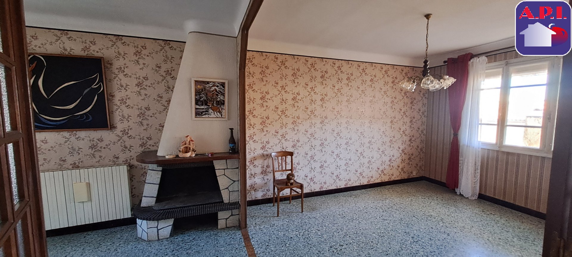 ...Elle comprend un salon-séjour avec cheminée, une cuisine aménagée, trois chambres, une salle...