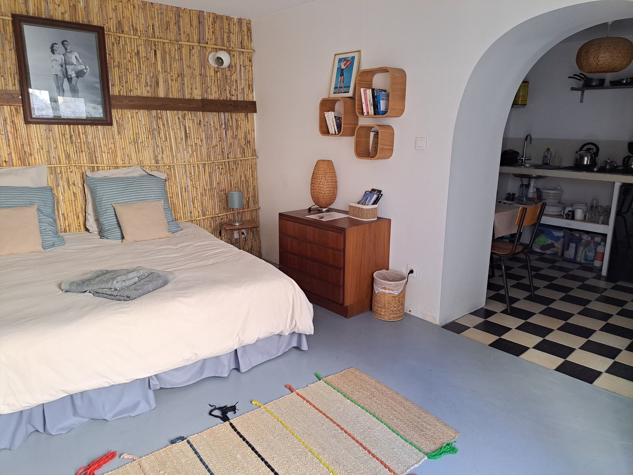 ...Au rez-de-chaussée, je propose une agréable pièce de vie avec coin nuit, une cuisine équipée...