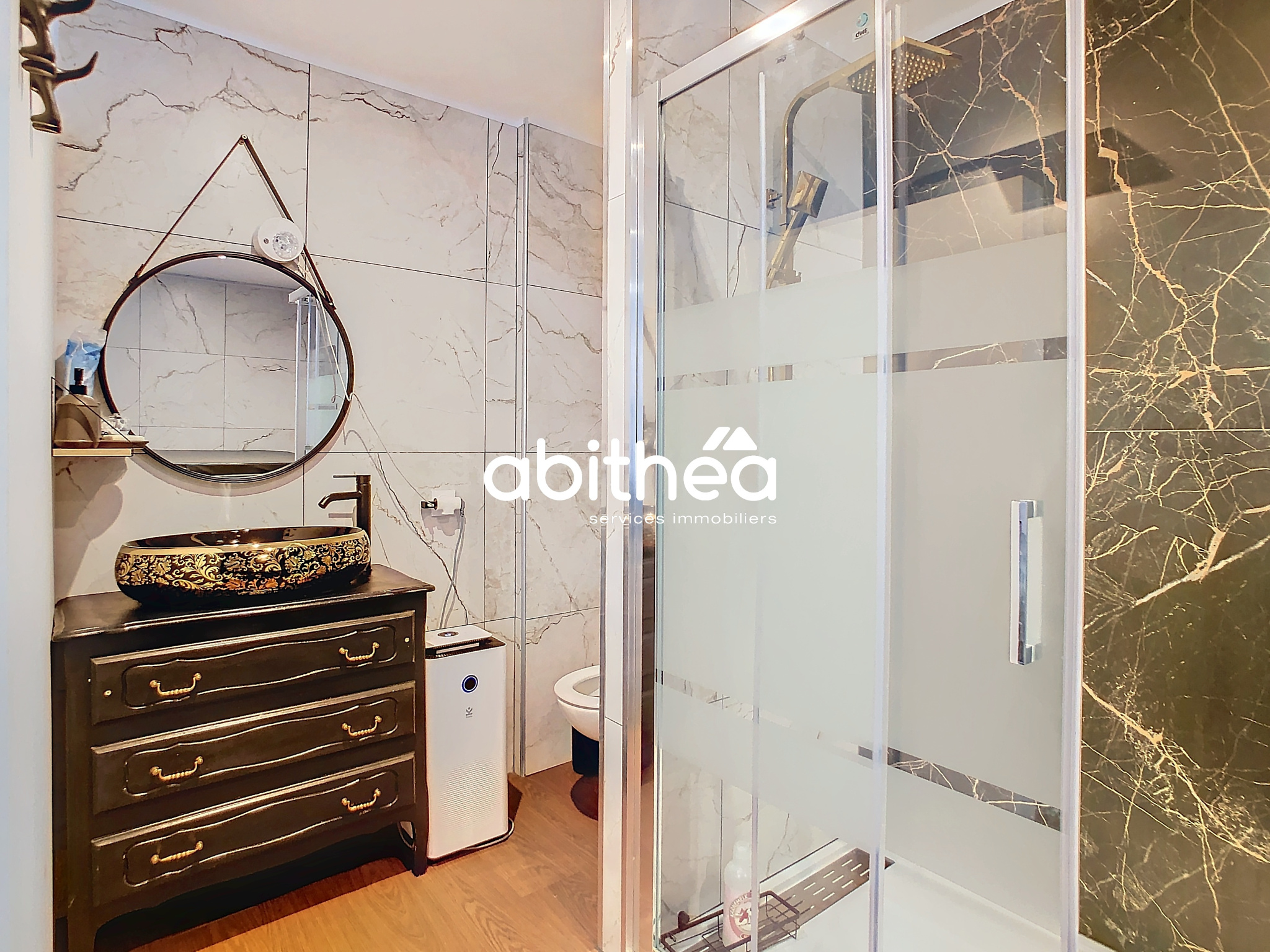 ... ravissant salon lumineux de 32 m2. Ce dernier se compose d'un boudoir accompagné de sa cheminée à f...