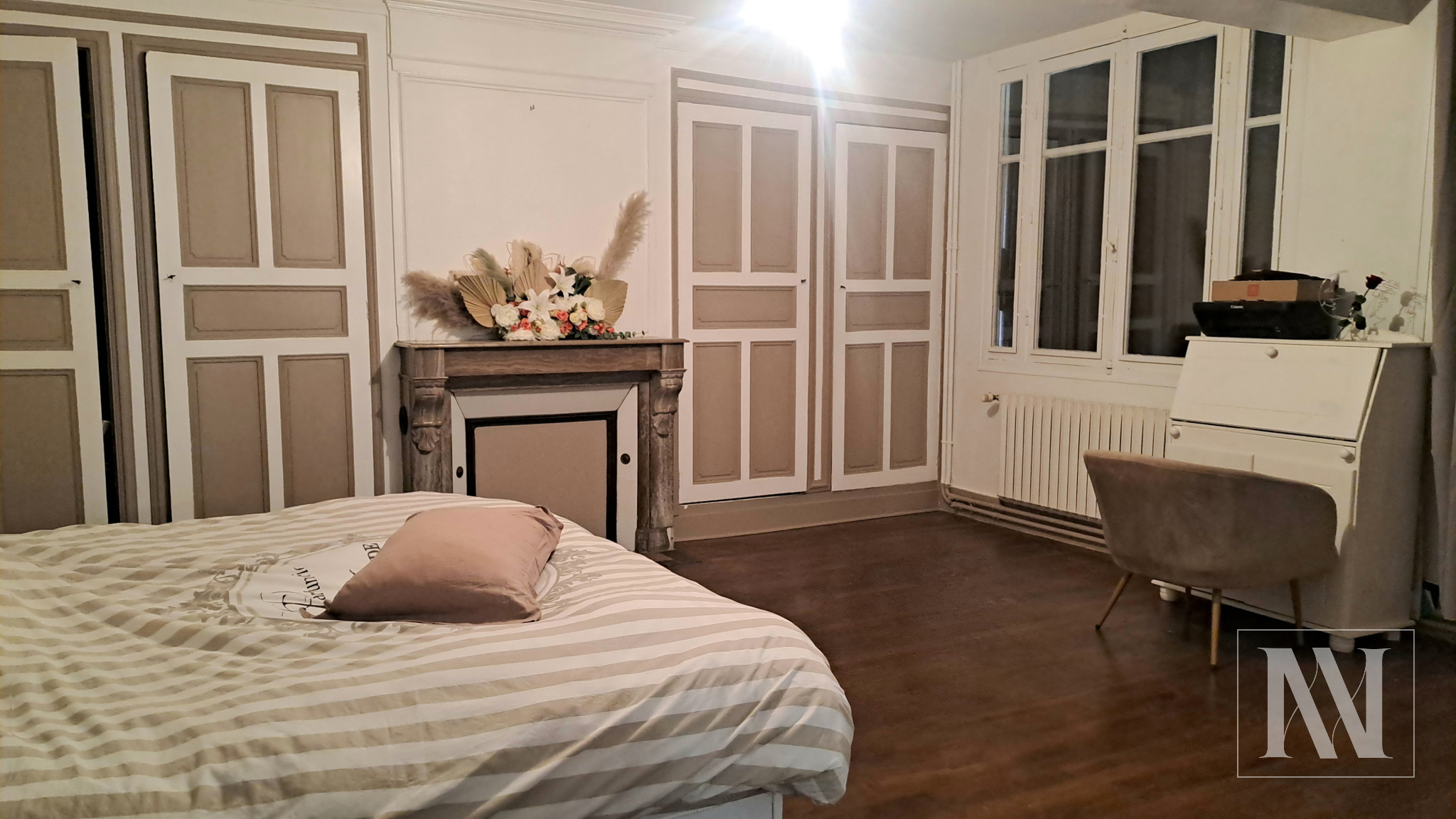 ...Au rez-de-chaussée, vous découvrirez une vaste pièce de vie lumineuse avec sa belle cheminée, une...